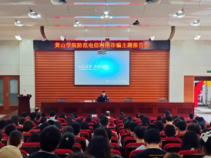 黄山市屯溪区反诈中心刑警褚佳应邀以《全民反诈你我同行》为题,通报了我校学生近期发生的典型案例情况,结合一线工作经验,生动解析了刷单返利、冒充客服、冒充熟人、网络游戏产品虚假交易、博彩等电信网络诈骗手段,通过生动案例对学生如何处置网络诈骗、提升安全防范意识进行了详细辅导。报告内容丰富,针对性指导性强。
