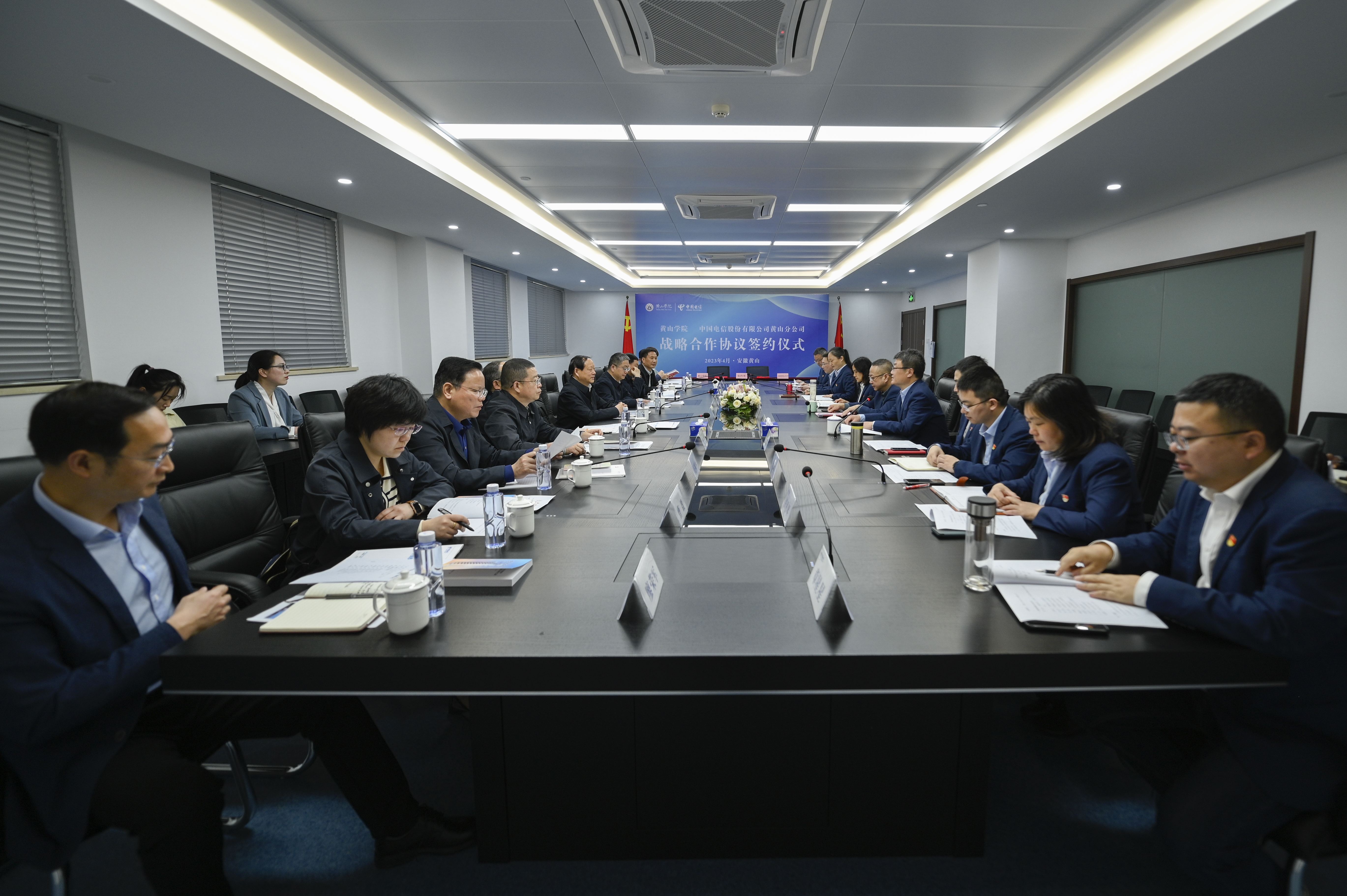 李铁范介绍了我校基本情况、办学定位、学科专业优势及未来愿景,并感谢中国电信黄山分公司一直以来对学校的关心与支持。他指出,多年来,双方始终保持着务实友好的合作关系,为进一步务实合作奠定了坚实基础。他强调,此次战略合作协议的签署,既是双方全面深化校企合作的新起点,更是双方面向未来、共谋发展的一项战略选择,希望双方在教育数字化、智慧校园建设、人才培养等方面找到新的契合点,实现合作共赢,推动双方为黄山市地方经济社会发展作出更大贡献。