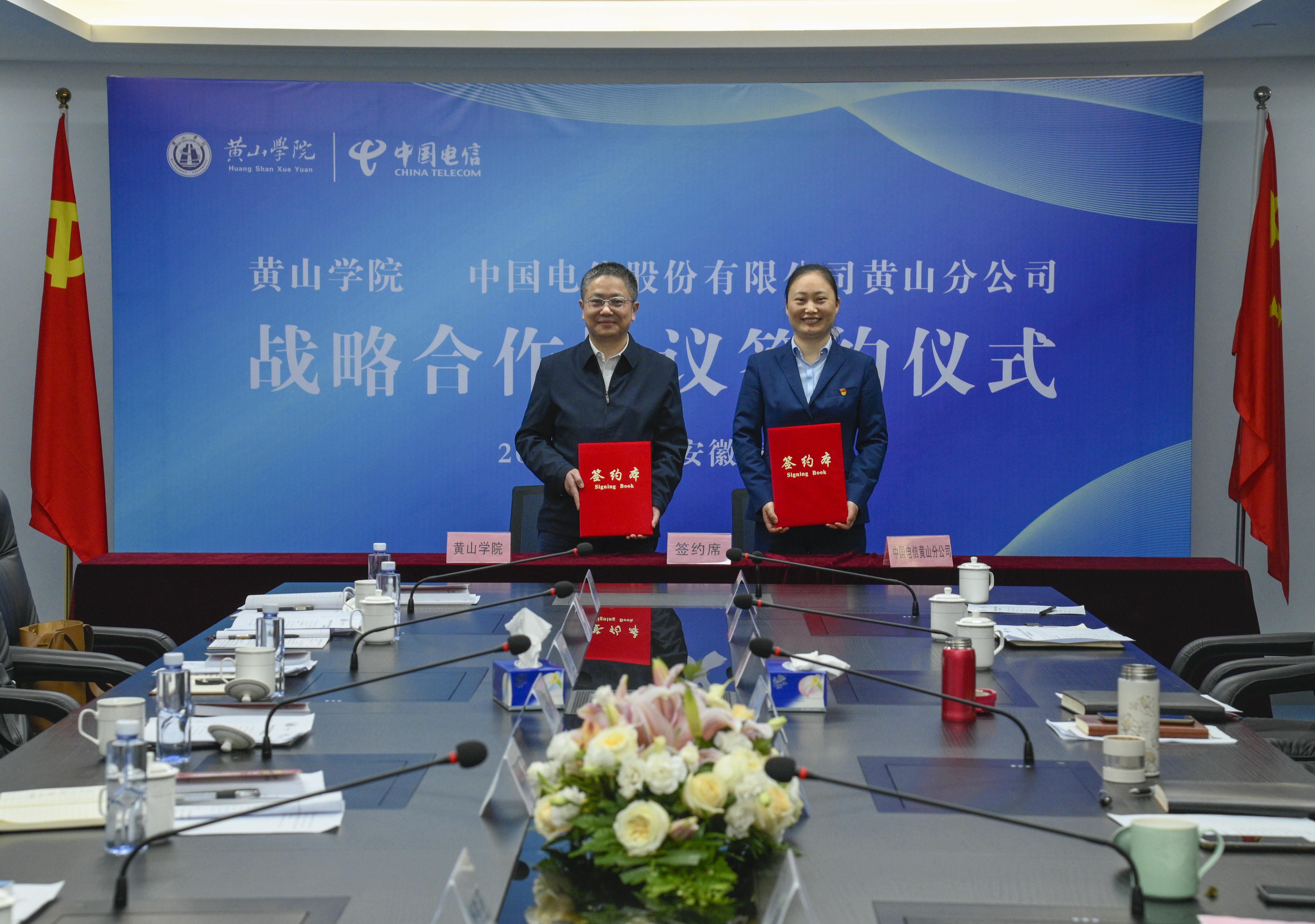 4月13日上午,黄山学院与中国电信黄山分公司签订战略合作协议。签约仪式在中国电信黄山分公司举行。校领导党委副书记、院长李铁范,党委委员、副院长李庆宏,党委委员、副院长张小明,党委委员、纪委书记、监察专员胡海生,中国电信黄山分公司党委书记、总经理胡斌,党委委员、纪委书记吴和平,党委委员、副总经理余卫平,党委委员、副总经理斯隆,党委委员、副总经理刘敏出席签约仪式。签约仪式由胡斌主持。