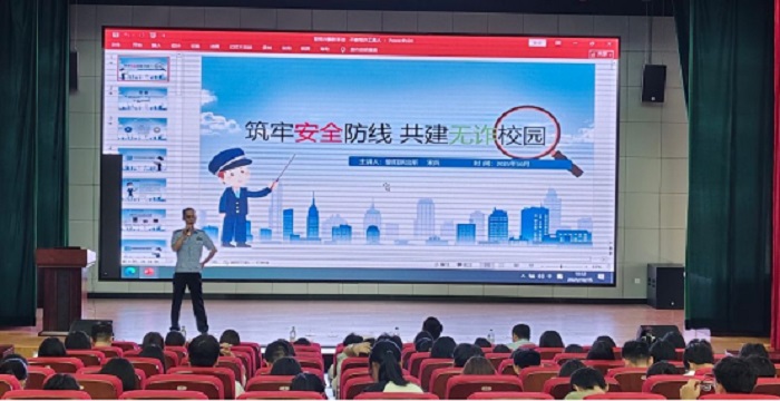 宋兵结合办案实际,重点讲解了当前高发的电信网络诈骗形式与防范技巧,提醒同学们提高警惕,远离非法借贷与邪教组织,树立正确的法治观念。