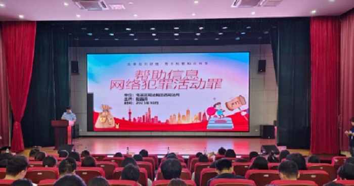 活动开始,赵昌霖围绕“帮信罪”这一主题,结合大学生群体特点,用通俗易懂的语言和真实案例,解析了帮助信息网络犯罪活动罪的构成、常见表现形式以及法律后果,提醒同学们切勿因一时疏忽或小利而触犯法律。
