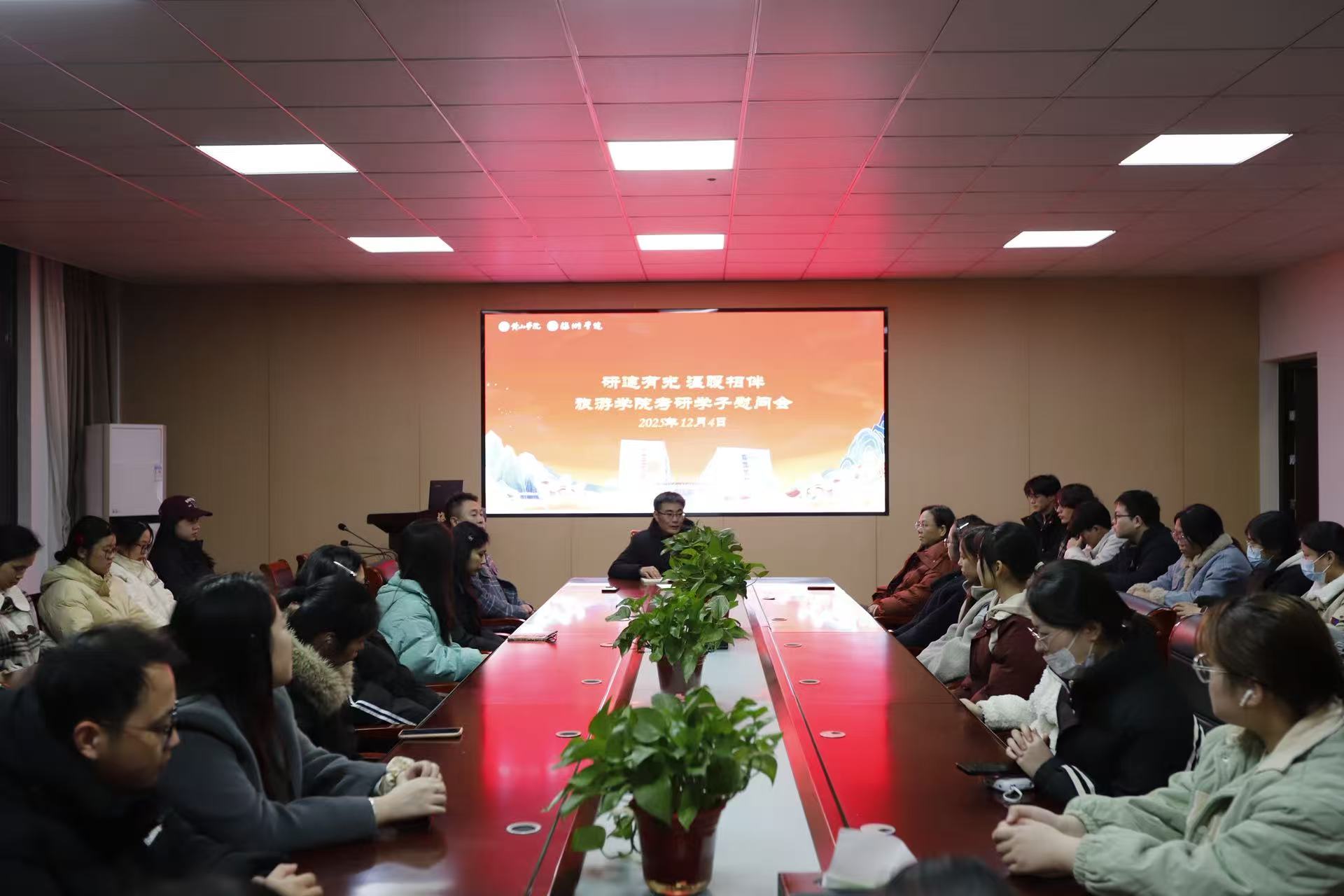 为鼓励考研学子积极备考,缓解备考压力,增强迎考信心,营造积极向上的学习氛围,12月4日晚,旅游学院举办2025年考研学子慰问会。学院党政领导、辅导员以及备战研究生考试的学子参加了本次活动。会议由党委副书记王式玉主持。
