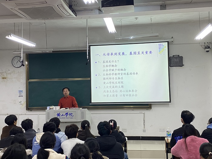 11月23日晚,生命与环境科学学院在文渊楼1201教室举办专题报告会。活动特邀校关工委 “五老” 报告团成员、学院生物科学专业荣退教授唐鑫生主讲。学院副院长(主持行政工作)万志兵教授主持报告会,生物科学教研室主任李伟教授、黄铭博士及 2024、2025级生物科学专业全体学生共同参与。