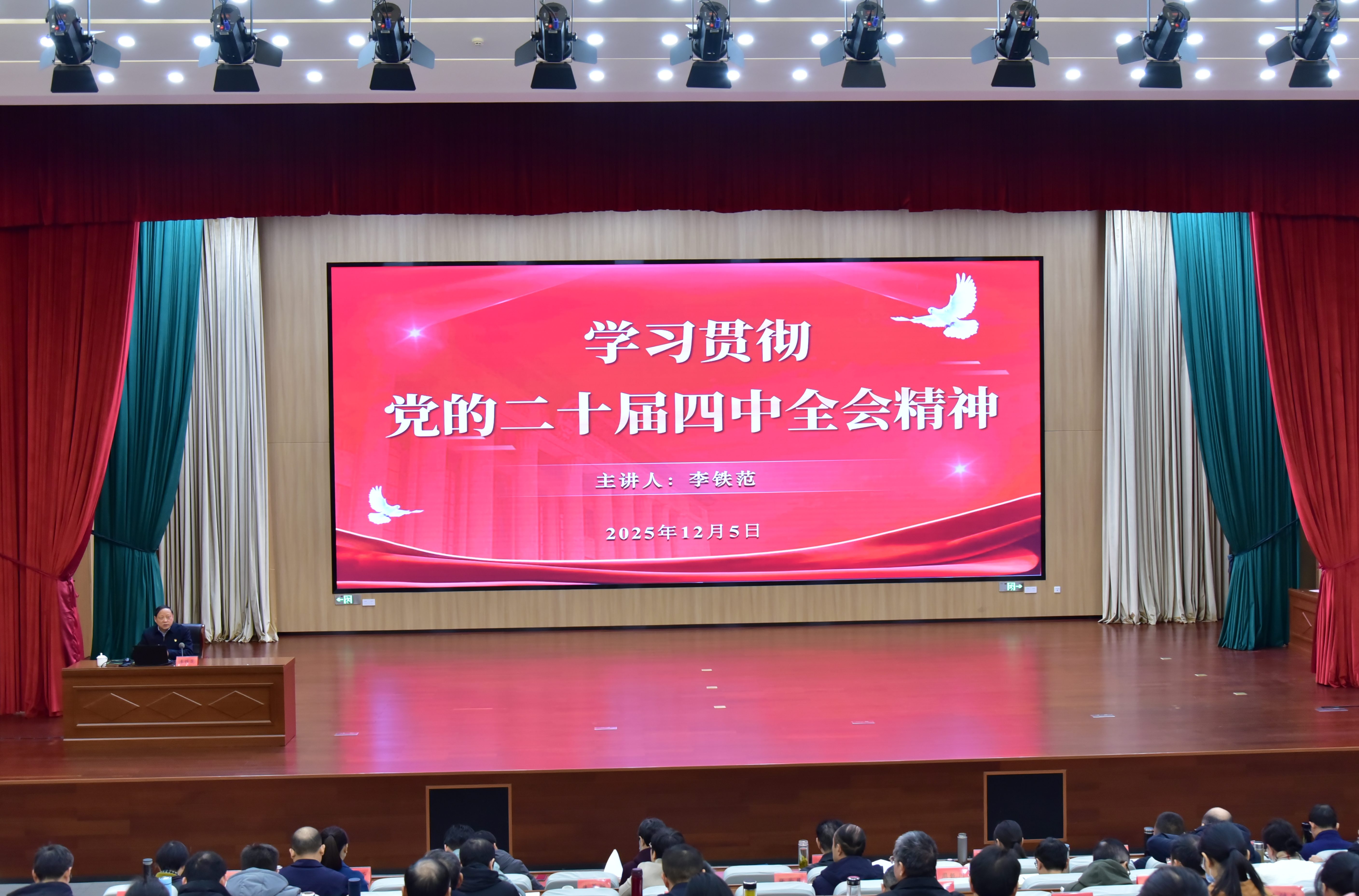 开班式结束后,李铁范围绕“学习贯彻党的二十届四中全会精神”主题作培训班首场专题授课。他结合全会公报核心内容,从“准确把握‘十五五’时期在基本实现社会主义现代化进程中的重要地位”、“深刻领会‘十五五’时期经济社会发展的指导方针和主要目标”、“全面理解‘十五五’时期经济社会发展的战略任务和重大举措”等维度,深入解读了党的二十届四中全会精神的核心要义,并结合学校发展实例,就如何将全会精神转化为冲刺硕士学位授予单位、开启“十五五”征程具体行动提出明确要求。