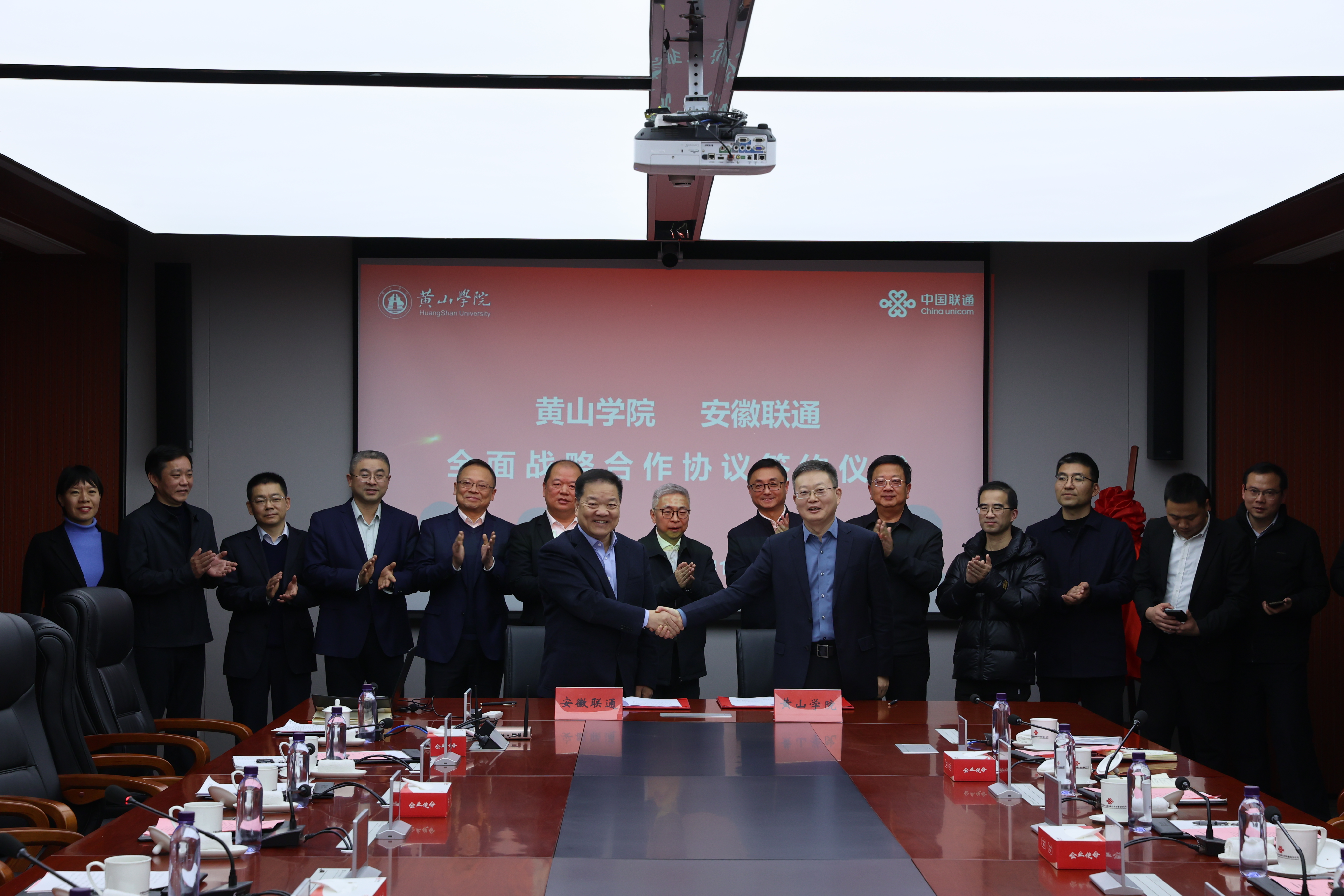 发展规划与社会合作处、科研处、网络与信息管理中心、旅游学院、信息工程学院负责人,中国联合网络通信有限公司安徽省分公司市场部、政企部,黄山分公司政企客户事业部、营销部等部门负责人参加签约仪式。