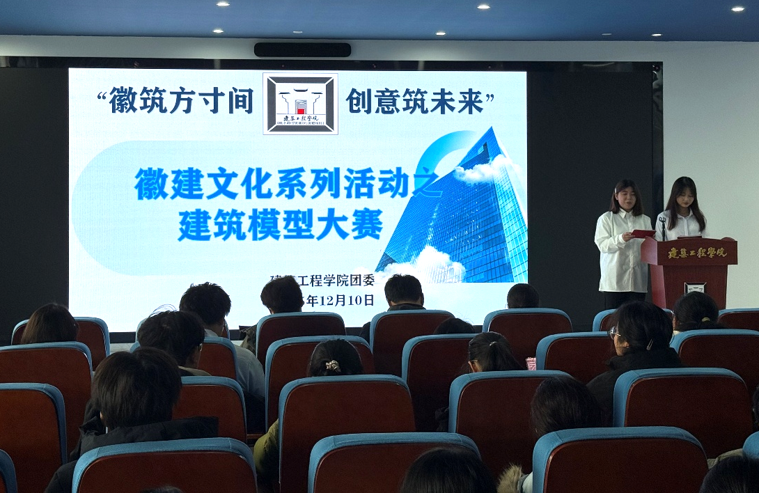 12月10日下午,建筑工程学院主办的“徽建文化系列活动之建筑模型大赛”决赛在文博楼8309教室举行。活动邀请了建筑工程学院专业教师出席并担任评委。