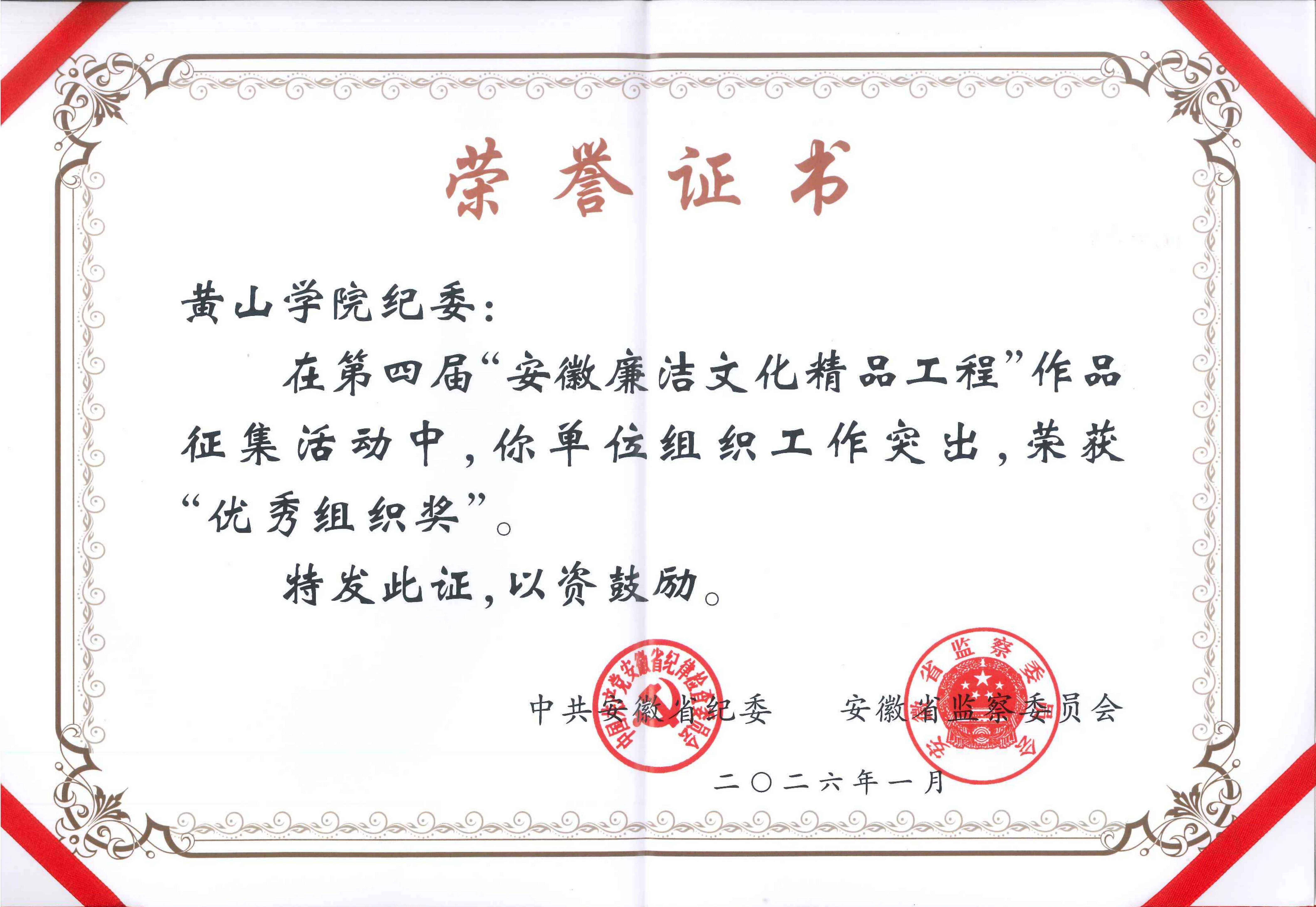 自第四届“安徽廉洁文化精品工程”作品征集活动启动以来,校纪委高度重视、牵头统筹、精心部署,各级党组织充分落实主体责任,二级纪委积极组织、广泛动员师生参与,充分挖掘校园廉洁文化资源,激发师生创作热情。活动期间,全校师生积极响应,围绕廉洁主题创作了涵盖动漫、平面设计,短视频,曲艺等多个类别的一批优质作品,形成了“上下联动、师生同心、全员参与”的良好创作氛围。此次“优秀组织奖”的获得,是对我校廉洁文化建设组织工作的充分肯定,也体现了我校在整合资源、搭建平台、推动廉洁文化落地生根方面的积极探索。