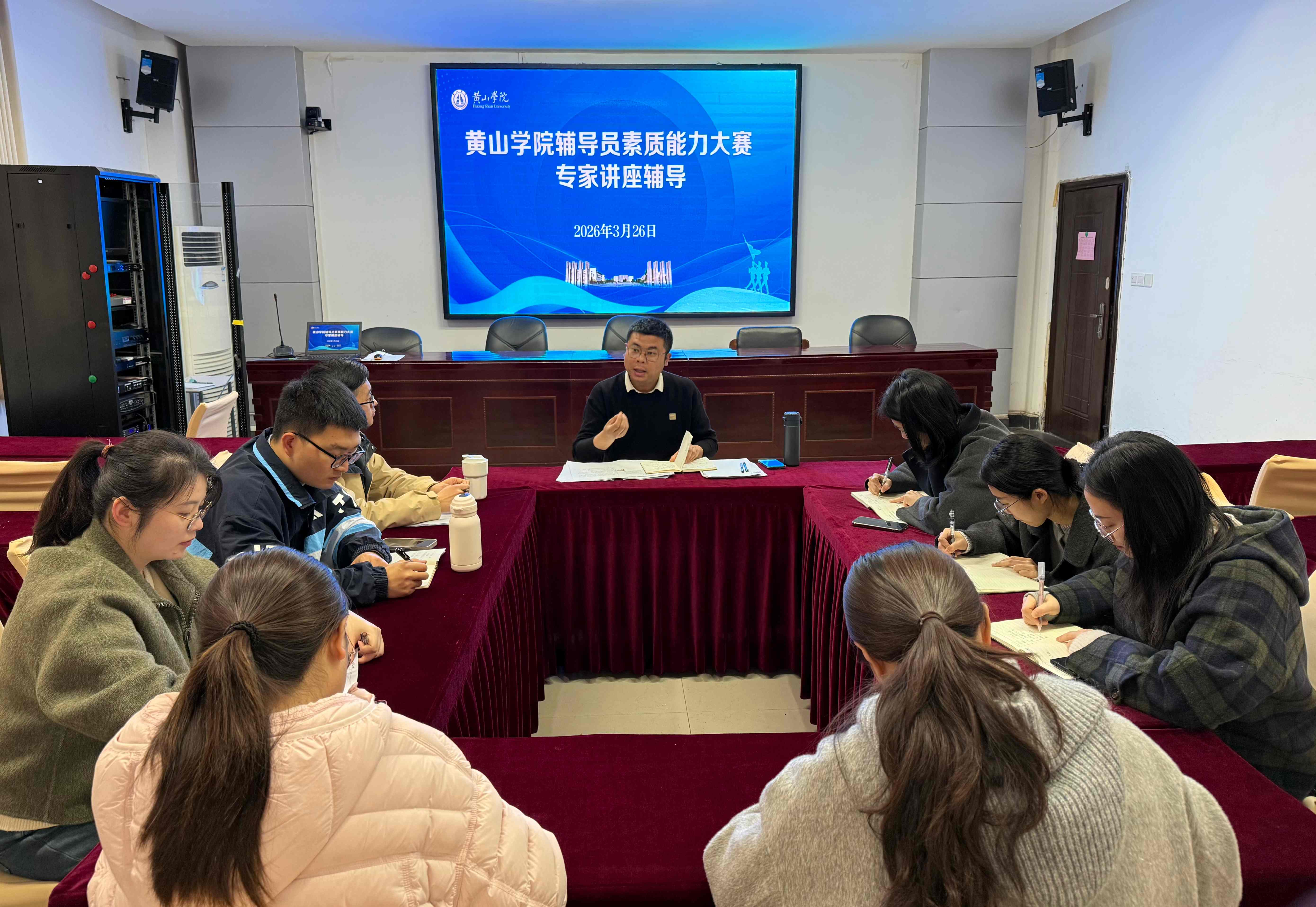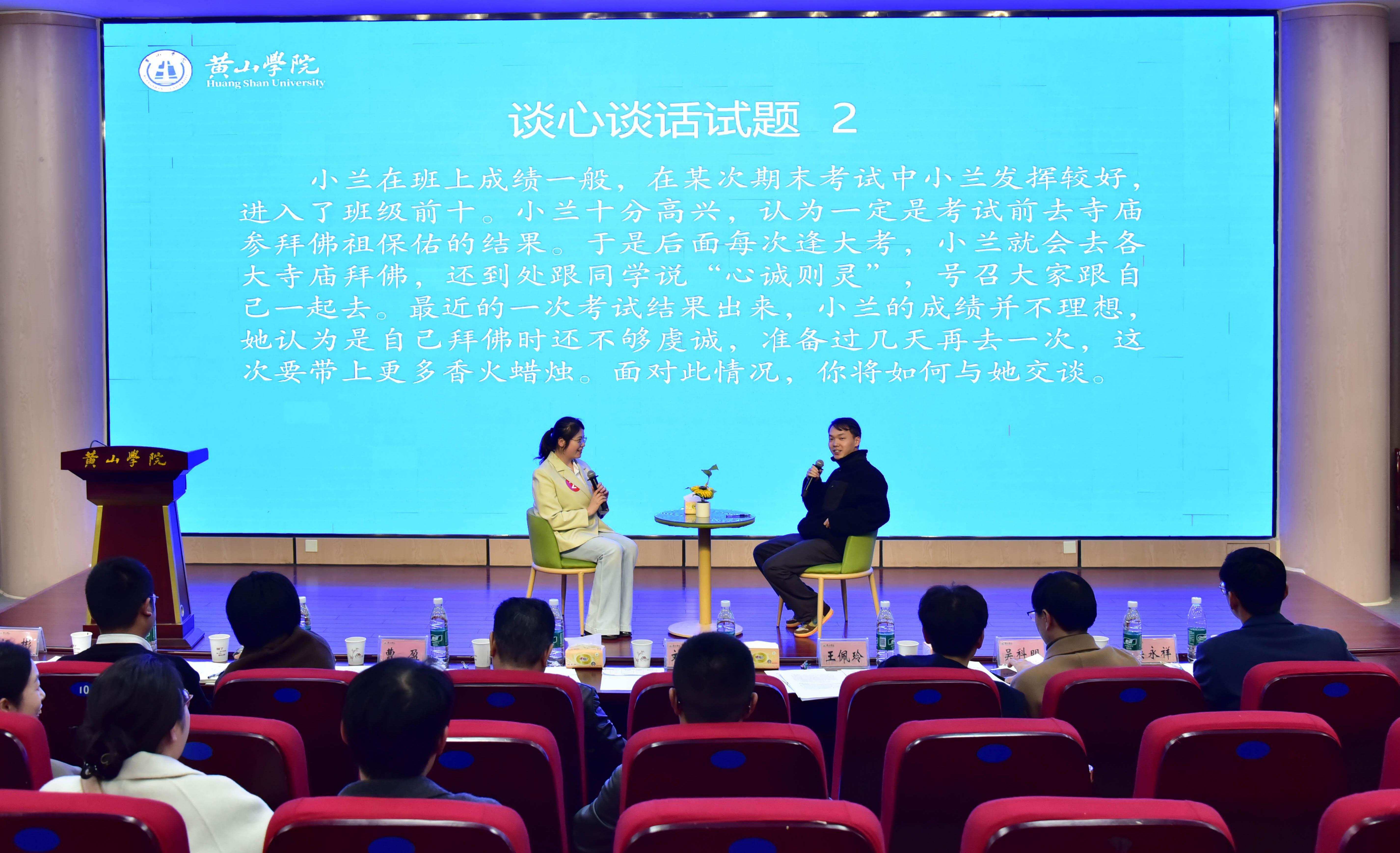 3月25日,黄山学院第十届辅导员素质能力大赛在率水校区文端楼二楼报告厅举行。校党委副书记刘力,组织部、人事处、工会、安全管理处、教务处、学工部等部门负责人及2024年安徽省辅导员素质能力大赛特等奖获得者王伟担任评委。二级学院分管副书记及全体专职辅导员现场观摩比赛。