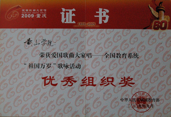 近日,教育部公布了爱国歌曲大家唱――教育系统“祖国万岁”歌咏活动评选结果,我校荣获爱国歌曲大家唱――全国教育系统“祖国万岁”歌咏活动高校优秀组织奖称号。
