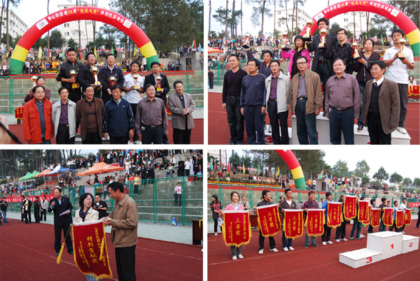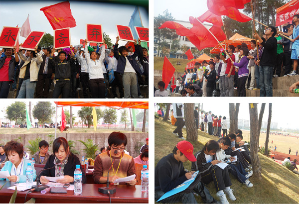 同时,本届运动会组委会还为在09级新生广播体操比赛中获奖的院系颁发了锦旗。其中,生环学院、艺术系获一等奖,外语系、旅游学院、化学系、数学系获二等奖,其余院系获三等奖。