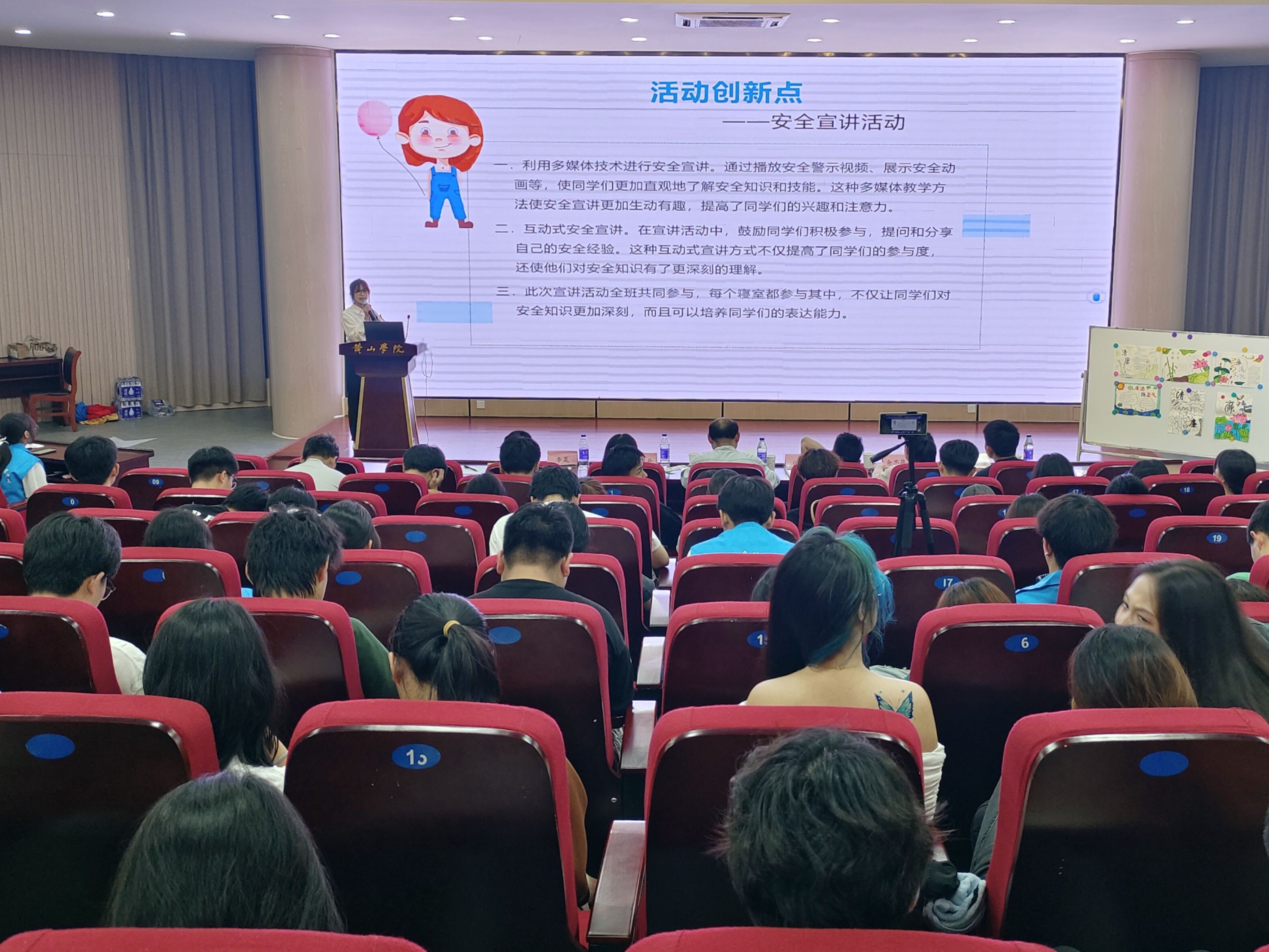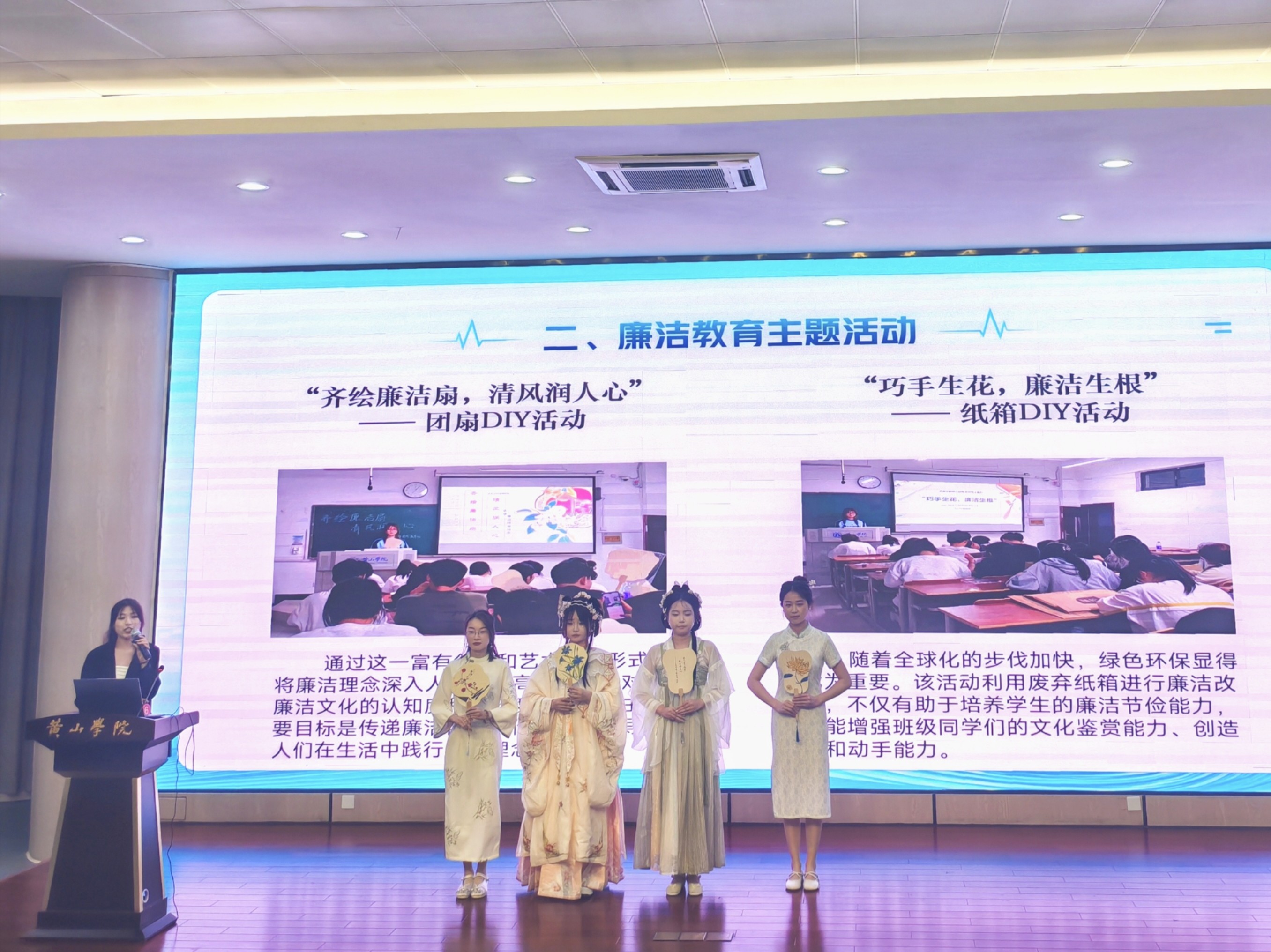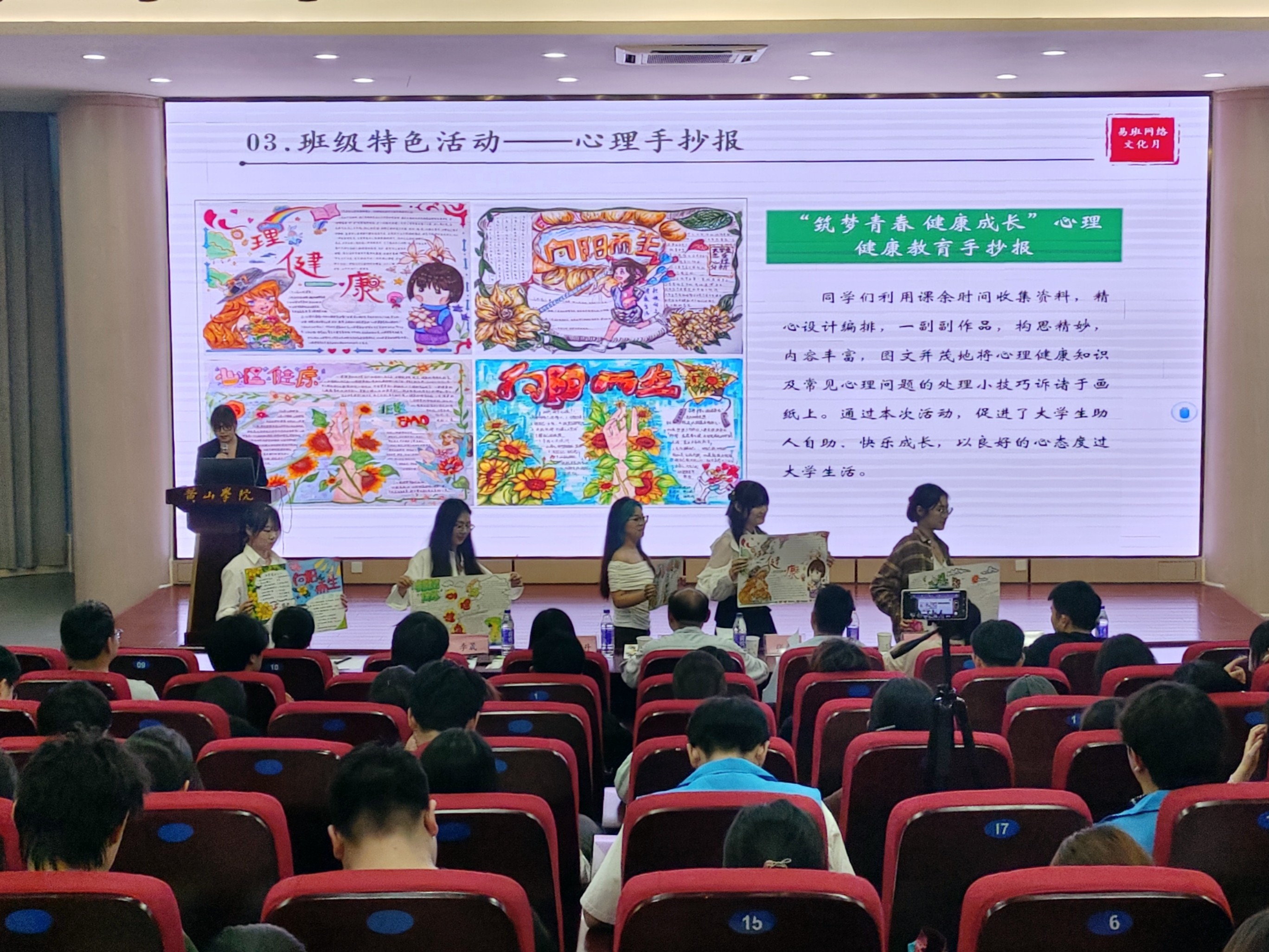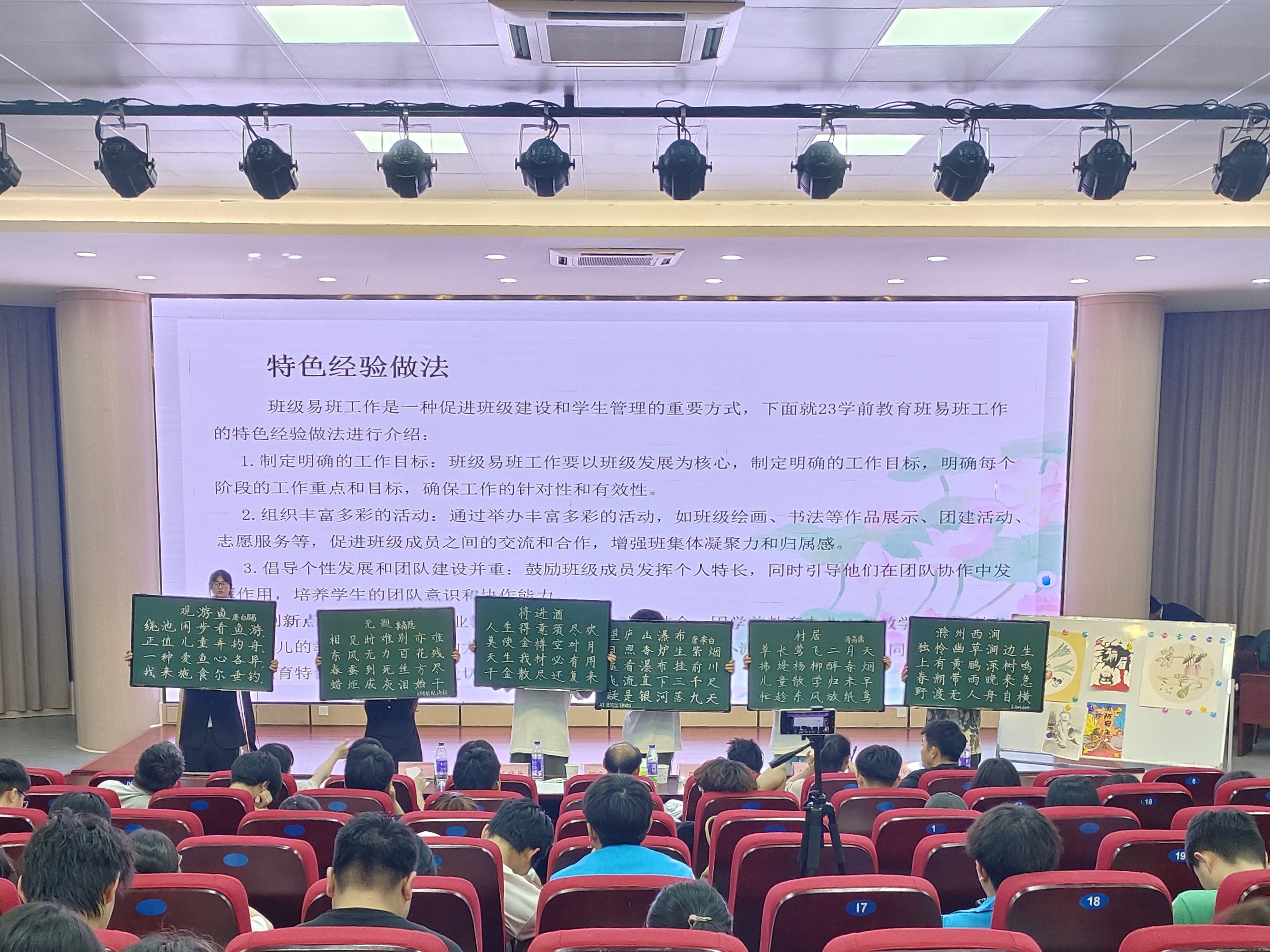 在复赛和决赛PPT汇报展示环节中,各班级围绕“坚守廉洁底线 筑牢安全防线”主题,从班级基本指标完成情况、特色创意活动和建设开展成效等方面对易班网络文化月中班级建设工作进行了详实汇报。汇报人结合各自专业和班级特点,充分展示了易班网络文化月中班级建设工作的亮点和创新成果。各班级结合主题运用易班平台开展了各种线上线下相结合的活动,如团扇绘制、书签制作、海报设计、竹编工艺体验以及安全隐患排查和安全微视频拍摄等,活动形式新颖多样,充分展现了师生的创新精神和团队协作能力。