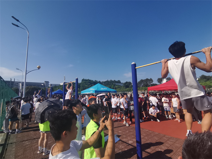 比赛前,体育学院夏学豪老师示范了标准引体向上动作,运动员们摩拳擦掌、蓄势待发,准备在单杠上发挥出自己的最佳水平。随着裁判长的一声哨响,比赛正式开始。每位参赛同学都稳抓单杠,使出浑身气力,腾空跃起、稳健落下、动作流畅,展现出了斗志昂扬、挑战自我、拼搏进取、素质优良的精神风貌。引体不停,掌声不断,同学们一跃而上的姿势勾勒出青春活力的身影。每一次引体向上,都是力量的爆发,都是奋斗的姿态,在一旁观看的同学们连连喝彩、掌声不断,给予参赛选手热情的支持与鼓励。