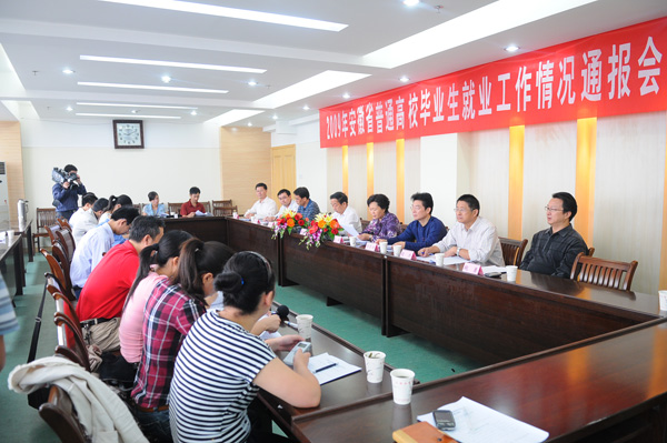 会议由省教育厅新闻办主持,省教育厅学生处及毕业生就业指导中心负责人参加会议。会上,安徽工程科技学院、黄山学院、安徽新华学院、安徽工业经济职业技术学院有关负责同志分别就各校促进毕业生就业工作的典型经验作介绍。