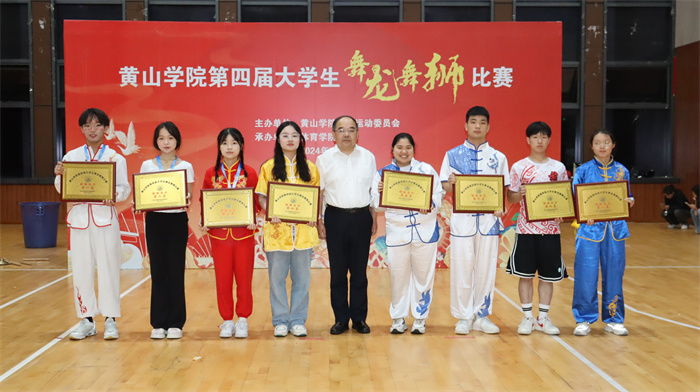 5月31日晚,黄山学院第四届大学生舞龙舞狮比赛在率水校区体育馆举办,本届比赛由校体委主办,体育学院承办,比赛内容分为舞龙教学五人龙和传统南狮两个项目,共有13个学院150人参加,其中国际教育学院首次参加。经过精彩角逐,建筑工程学院、化学化工学院、机电工程学院、国际教育学院、经济管理学院、生命与环境科学学院、文化与传播学院和外国语学院荣获舞龙项目前八名;教育科学学院、化学化工学院、文化与传播学院、旅游学院、数学与统计学院、经济与管理学院、国际教育学院和信息工程学院荣获舞狮项目前八名;化学化工学院、建筑工程学院、教育科学学院、文化与传播学院、国际教育学院、机电工程学院、旅游学院和经济管理学院荣获团体总分前八名。