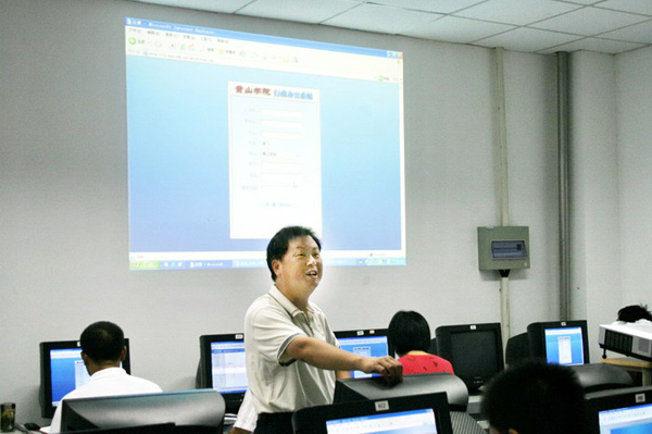 8月28日下午,我校在现代教育中心机房举办第二次黄山学院电子政务服务平台培训班,各院系、部门党政负责人参加了培训,院长汪建利、副院长樊嘉禄出席了培训活动。