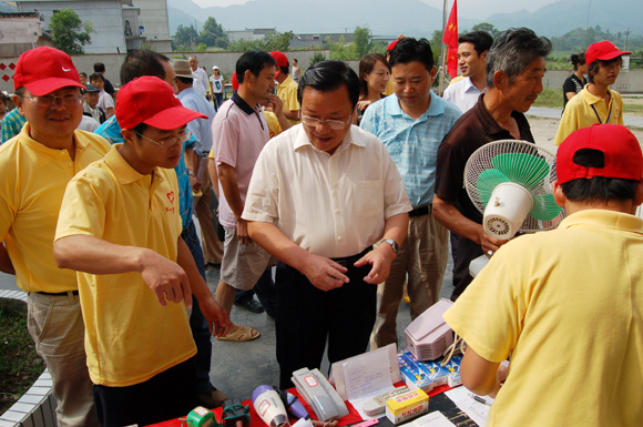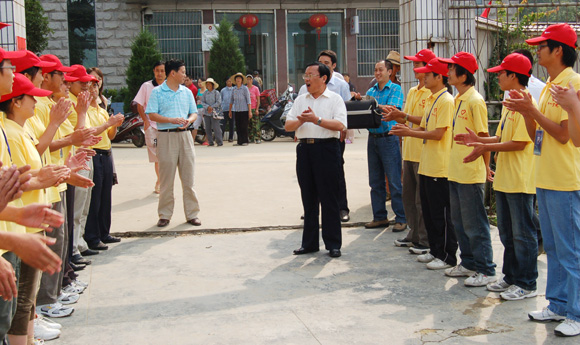 9时许,在该点参加“三下乡”社会实践服务的我校大学生整齐地列队在小学大门,他们身着志愿者统一服装,用中国共青团团歌欢迎汪良发,汪良发双手拍着轻快的节奏,与他们一起歌唱。接着,汪良发走近服务队的家电维修台,与志愿者亲切交谈,赞赏他们做出了实事和好事。他还参观了义务支教教室、志愿者宿舍等场所。
