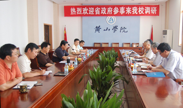调研组一行赞扬我校在服务地方,为地方做贡献上所取得的成绩,他们说,黄山是国家的名片,黄山学院提升了这张名片的档次和知名度,黄山学院在环境优化、规划布局、节约办学上有自己的创新思路,黄山学院能够利用地域优势,培育特色,加强国际合作,这得益于领导班子清晰的发展思路,战略性的谋划眼光。调研组表示,一定会把我校反映的问题及时传达给相关的省政府领导,争取早日解决问题。