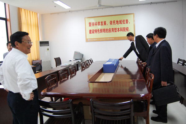 孙高产对我校在构建节约型校园和鼓励大学创业工作等方面所采取的举措表示赞赏,对我校以往取得的成绩表示肯定。他说,“四大工程”、“四问”等有利于促进学校发展,符合科学发展规律,是领导班子的大智慧,是领导班子强凝聚力的体现。他指出,黄山学院在学习实践科学发展观活动中,起点高,特色明,为下一步活动的开展打下了基础。学校在良好的基础上,要用更开阔的思路发动全校师生,做到更好地集民智,得民心,促进学校各方面的长足发展。他强调,学校要结合铜陵会议精神,更好地学习和调研,解放思想,明确工作方向,解决实际问题。他祝愿黄山学院能够取得更大的成果,做大做强,早日成为有影响力的综合性大学。