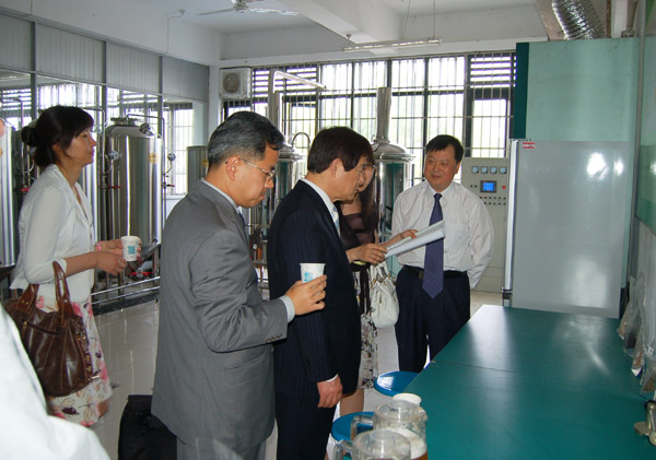在院长汪建利,党委委员、外事办主任胡家俊的陪同下,代表团一行先后参观了生环学院微生物发酵室、动植物标本实验室、数码互动显微镜实验室,徽州文化研究所及图书馆特藏室。党委书记汪良发也专门会见了代表团一行。