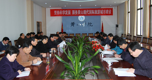 在三楼会议室,召开了“坚持科学发展,服务黄山现代国际旅游城市建设”座谈会。校党政领导汪良发、汪建利、李家祥、徐成钢、吴邦贵、樊嘉禄、汪大白、胡家俊、胡一宁参加了座谈会。座谈会上,王福宏听取了我校建设发展情况和下一步工作思路的汇报并作重要讲话。