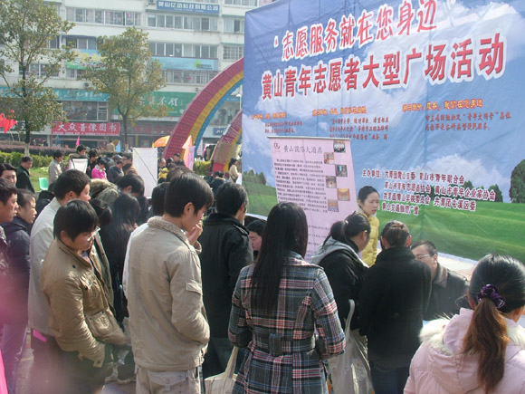3月6日在屯溪昱中花园,由我校团委、学生处联合团市委、市青年联合会、市青年企业家协会等6家单位联合举办的青年志愿者大型广场活动吸引着市民、学生和媒体。其中“创业就业,我们与你同行”招聘会现场,更是人头攒动,络绎不绝。市委常委、组织部长赵湘冰、副市长路海燕在团市委书记程健、校团委副书记高文的陪同下到现场进行指导。