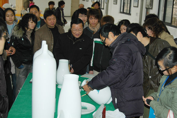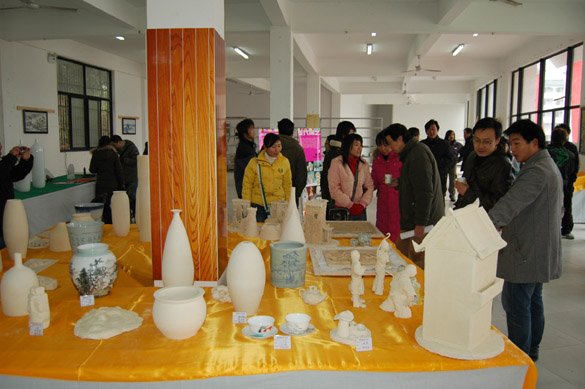 本次展出还得到教务处、人事处、宣传部等各部门的支持,吸引了景德镇陶瓷学院、黄山市美协、黄山市书协及多家陶瓷公司前来观摩,受到了各方的好评。