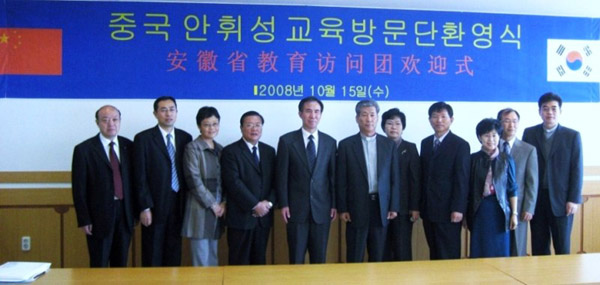 应韩国有关高校的邀请,10月13日―18日,校党委书记汪良发、外事办主任胡家俊随以省教育厅厅长程艺为首的安徽省高等教育代表团对韩国韩瑞大学、顺天乡大学、培材大学、加图立上智大学、安东大学进行了友好访问并就与上述高校间的合作交流进行会谈。