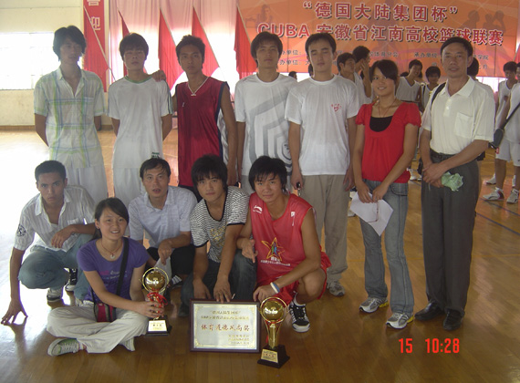 在7月11日―15日于芜湖安徽工程科技学院举行的江南片高校大学生篮球赛上,我校男女篮球队在领队汪大白院长的带领下,双双获得第三名的佳绩,并被评为“体育道德风尚奖”。
