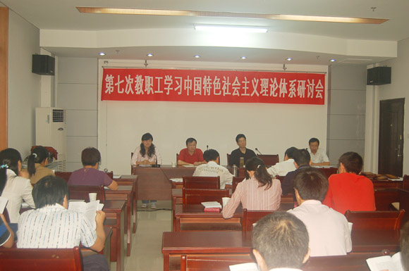6月18日下午,我校在逸夫图书馆一楼第一会议室召开学习中国特色社会主义理论体系研讨会。校党委副书记李家祥出席研讨会并讲话。各党总支书记和部分提交研讨论文的作者参加了研讨会并进行了论文交流。研讨会由党委宣传部副部长汪家庚主持。