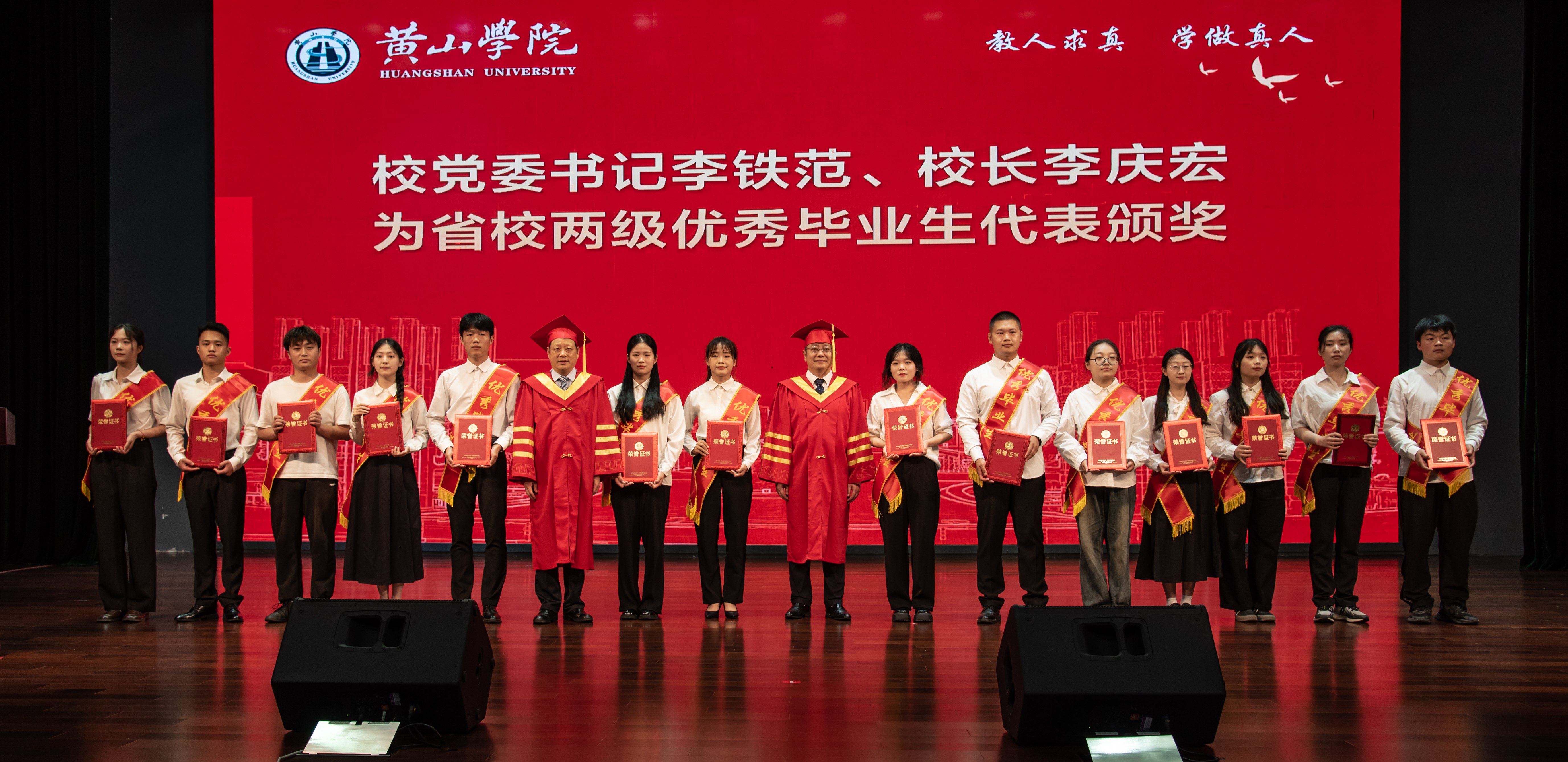 李铁范、李庆宏为省校两级优秀毕业生代表颁奖。