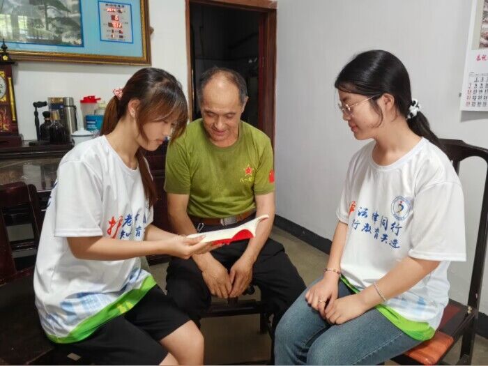 7月6日上午,经济管理学院“护老法律同行 知行教育共进”志愿服务团队前往重点人群退伍老兵家里进行走访慰问并普及相关法律知识,团队前往的是退伍老兵徐云海先生的家里,他曾参加过中越边境自卫反击战,是一名人民英雄。