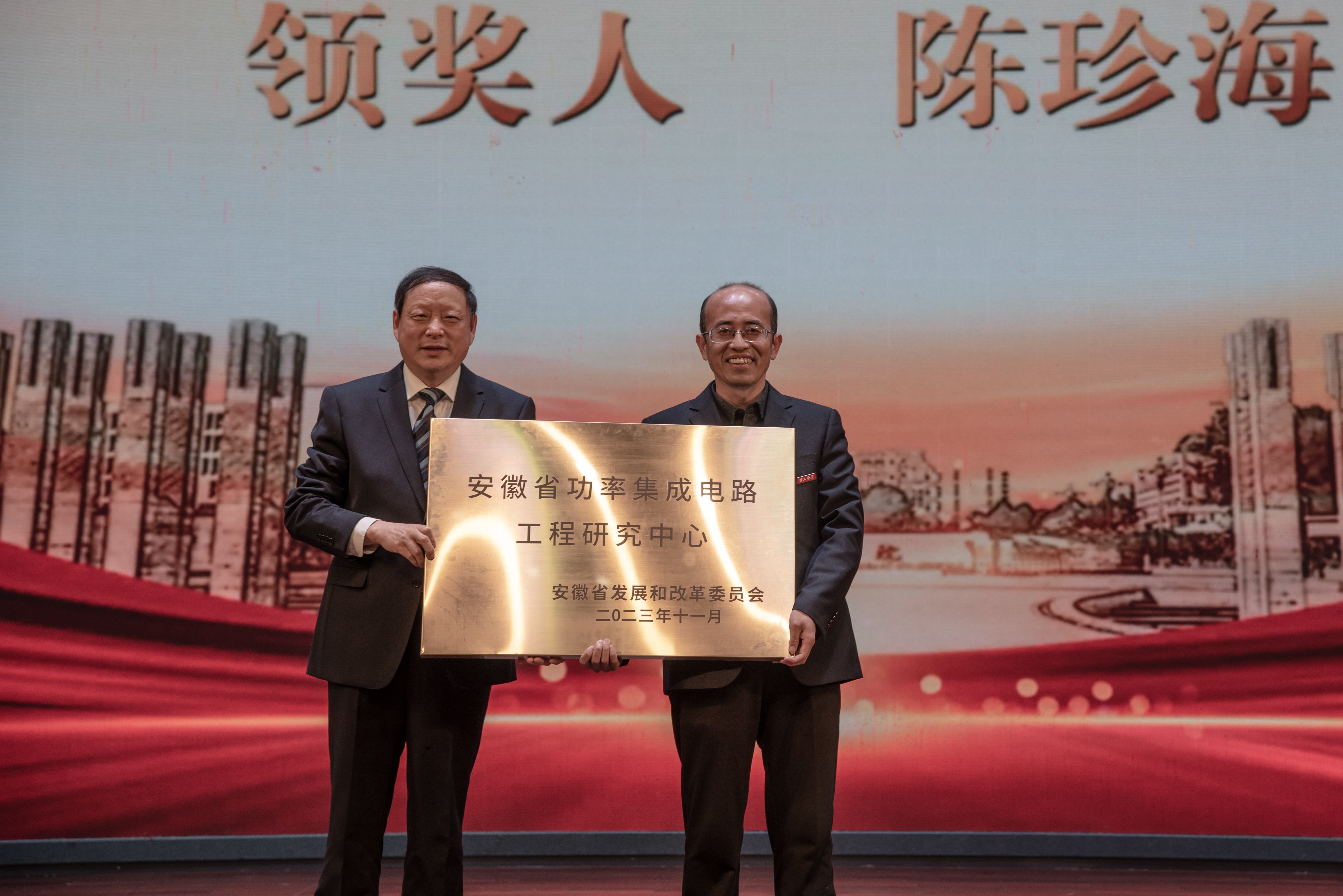 李铁范为获得省级科研平台(安徽省功率集成电路工程研究中心)单位代表陈珍海授牌