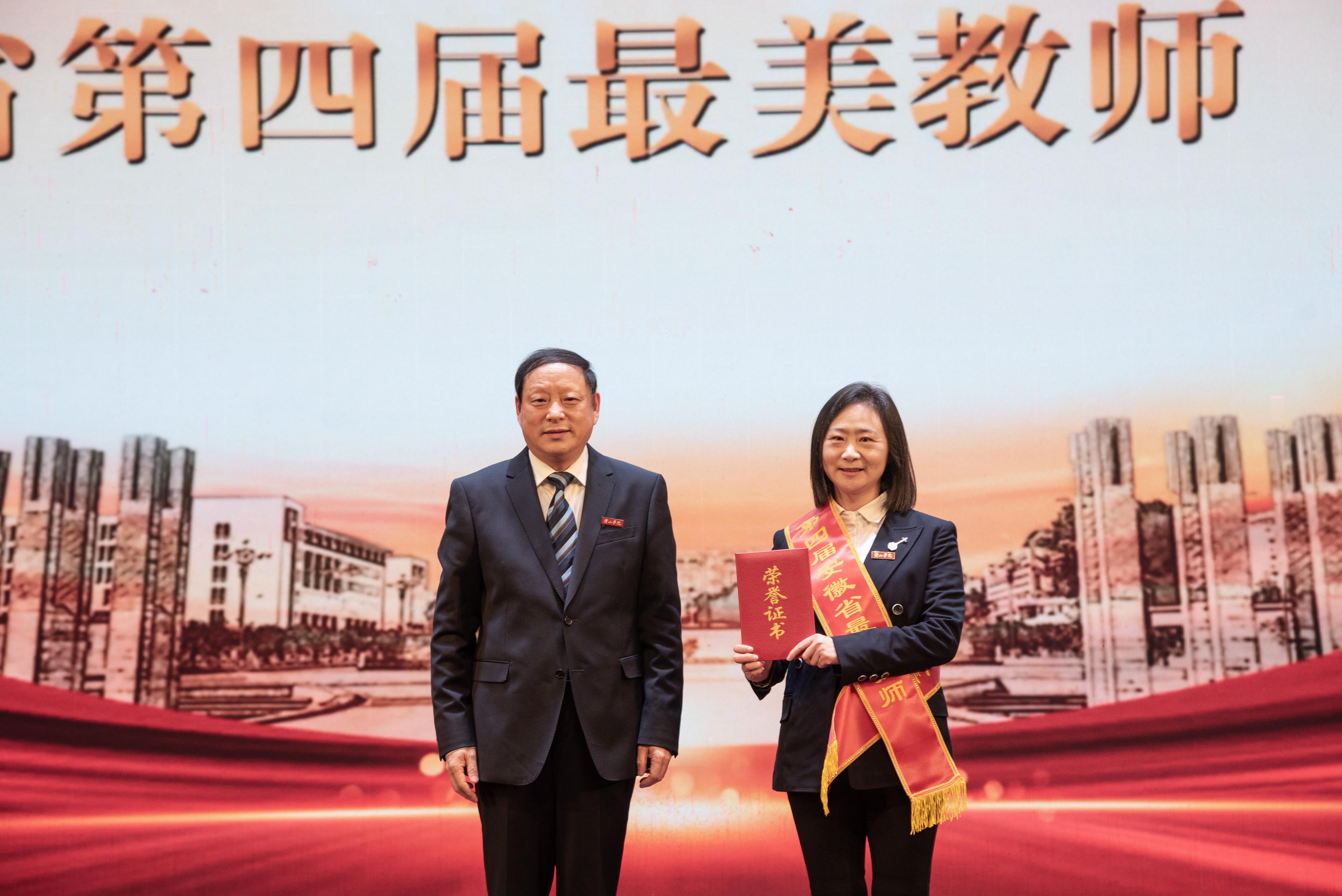 李庆宏、章文静、周权为黄山学院第四届“大学生心目中最美教师”获奖教师颁奖