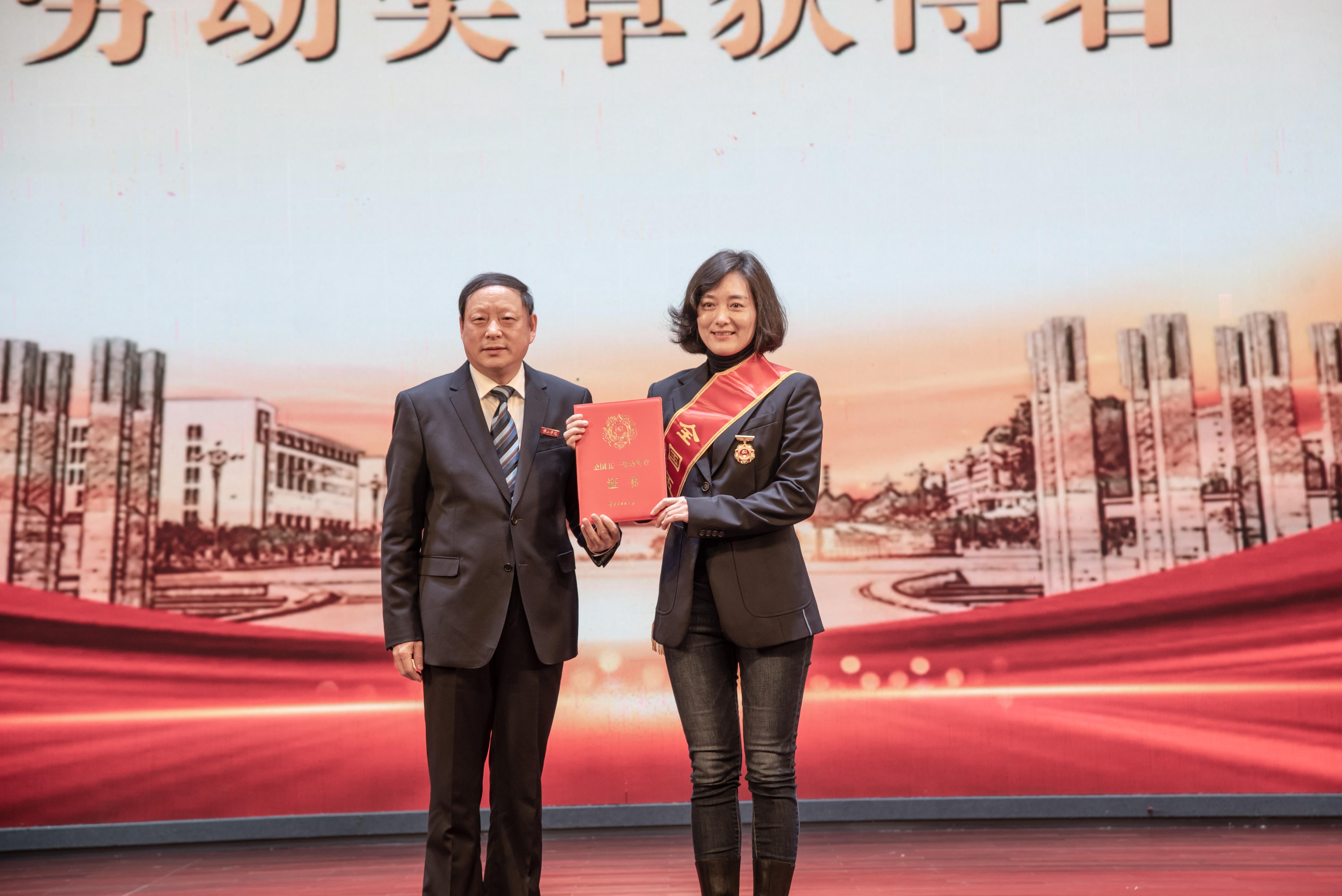 李铁范为全国五一劳动奖章获得者刘元元颁奖