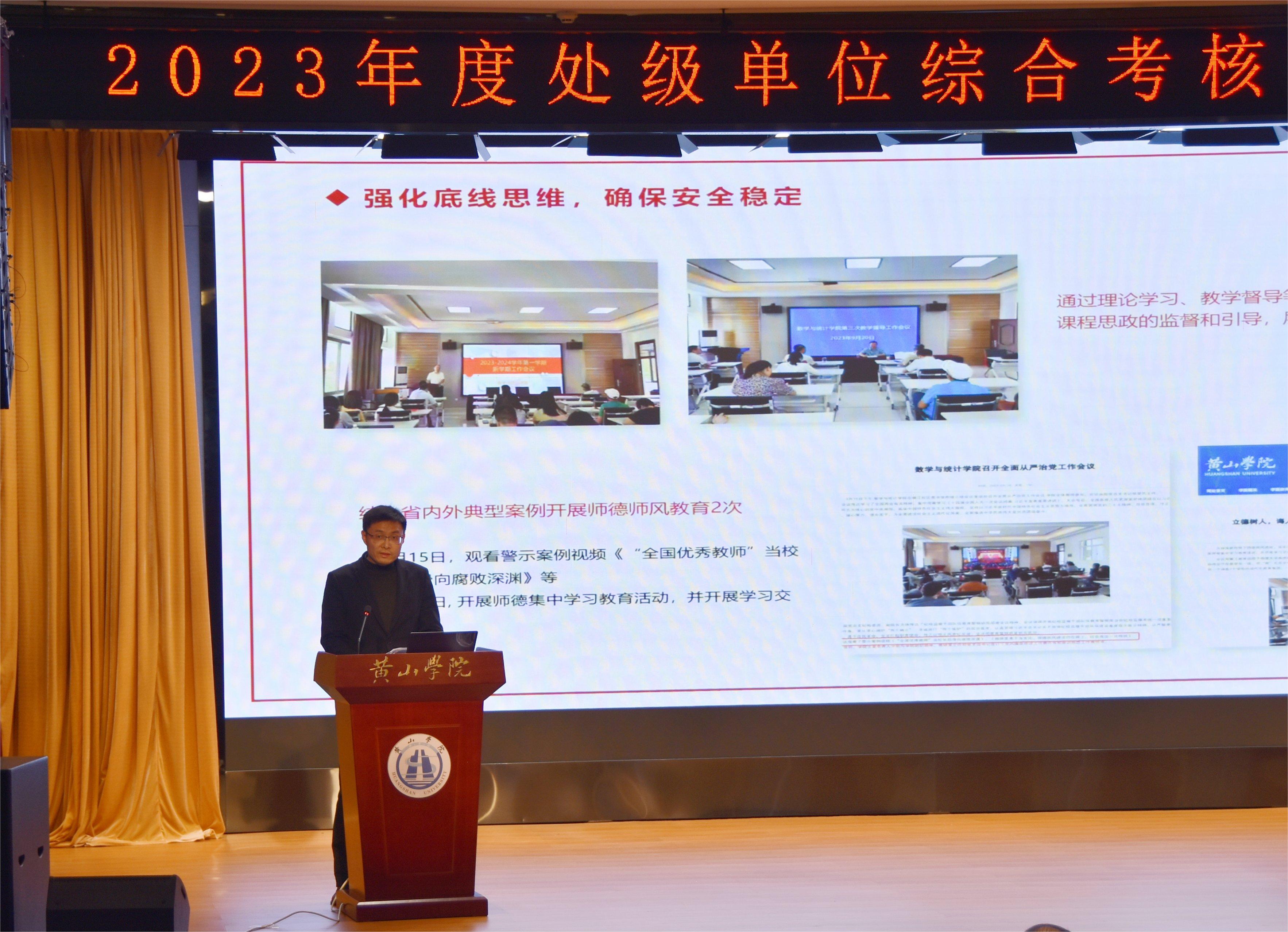 全校36家处级单位负责人对标2023年党政工作要点,围绕本单位“党的建设”和“事业发展”,通过PPT形式,以翔实的数据和丰富的图表,述实绩、晒亮点、找问题、谈思路,盘点一年来的工作成绩,查找存在问题,思考下阶段努力方向。