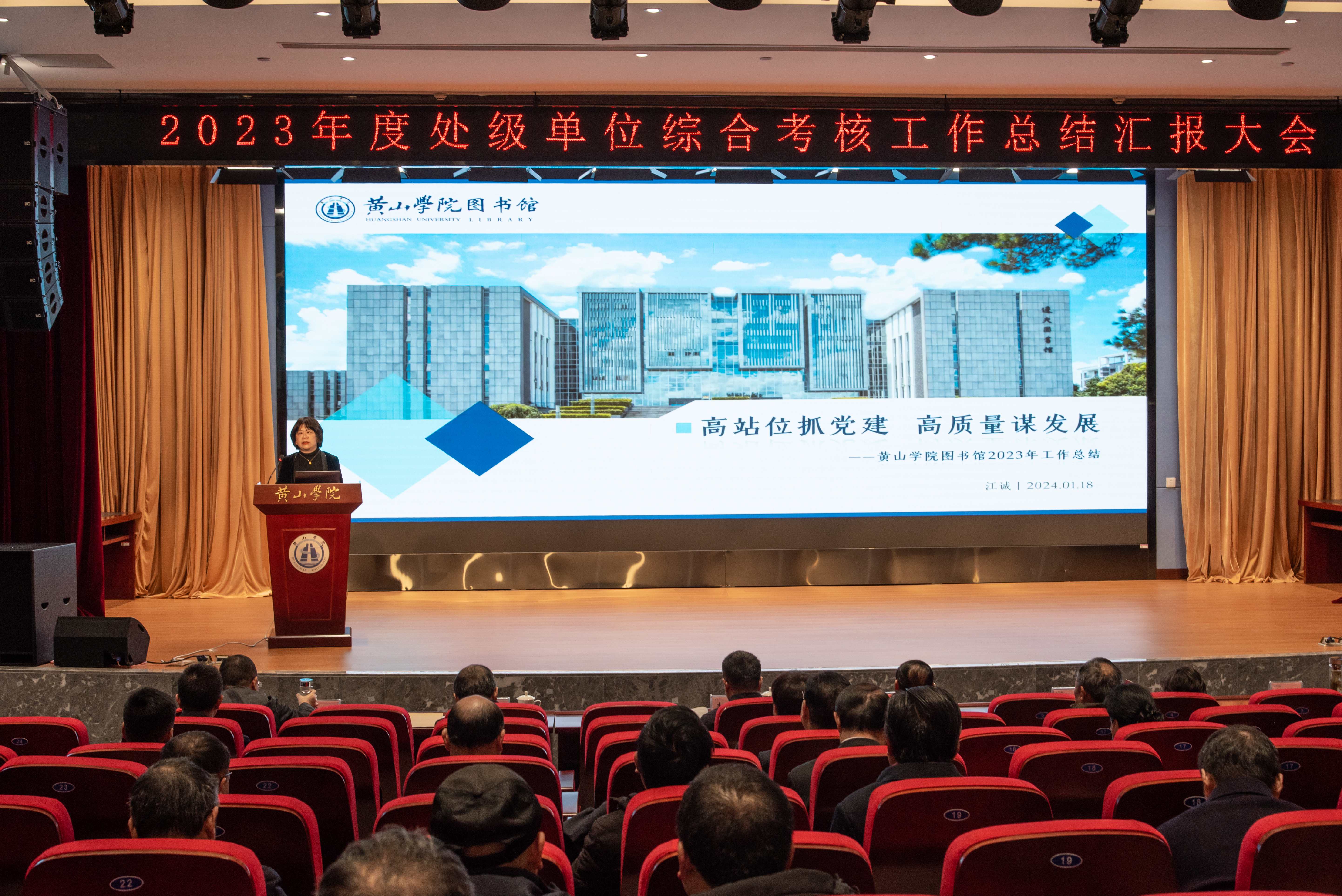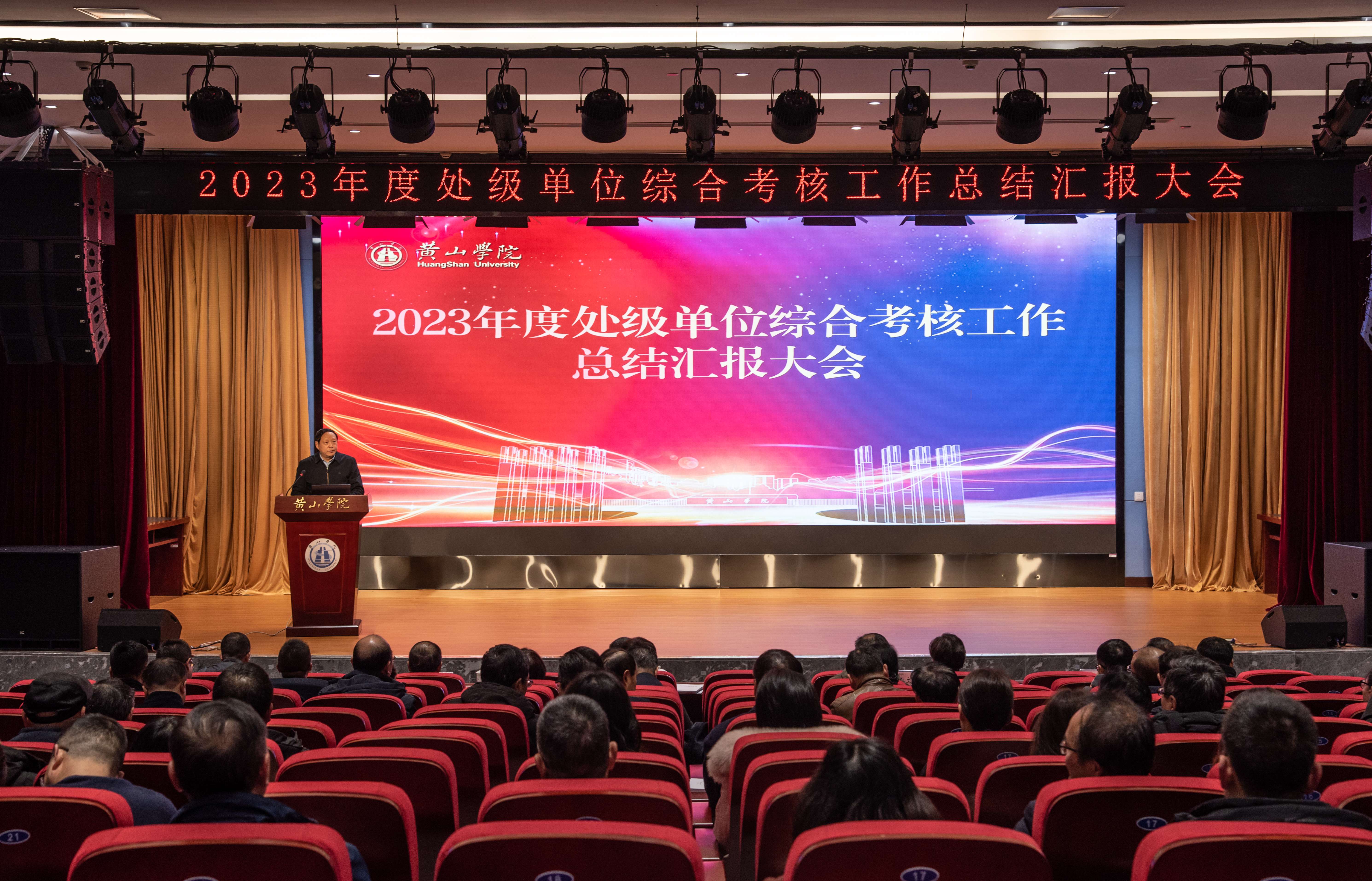 为全面回顾总结2023年工作,促进工作交流,1月18日,我校在文博楼二楼报告厅召开2023年度处级单位综合考核工作总结汇报大会,校领导李铁范、李庆宏、章文静、张小明、胡海生出席会议。大会由党委书记李铁范主持。
