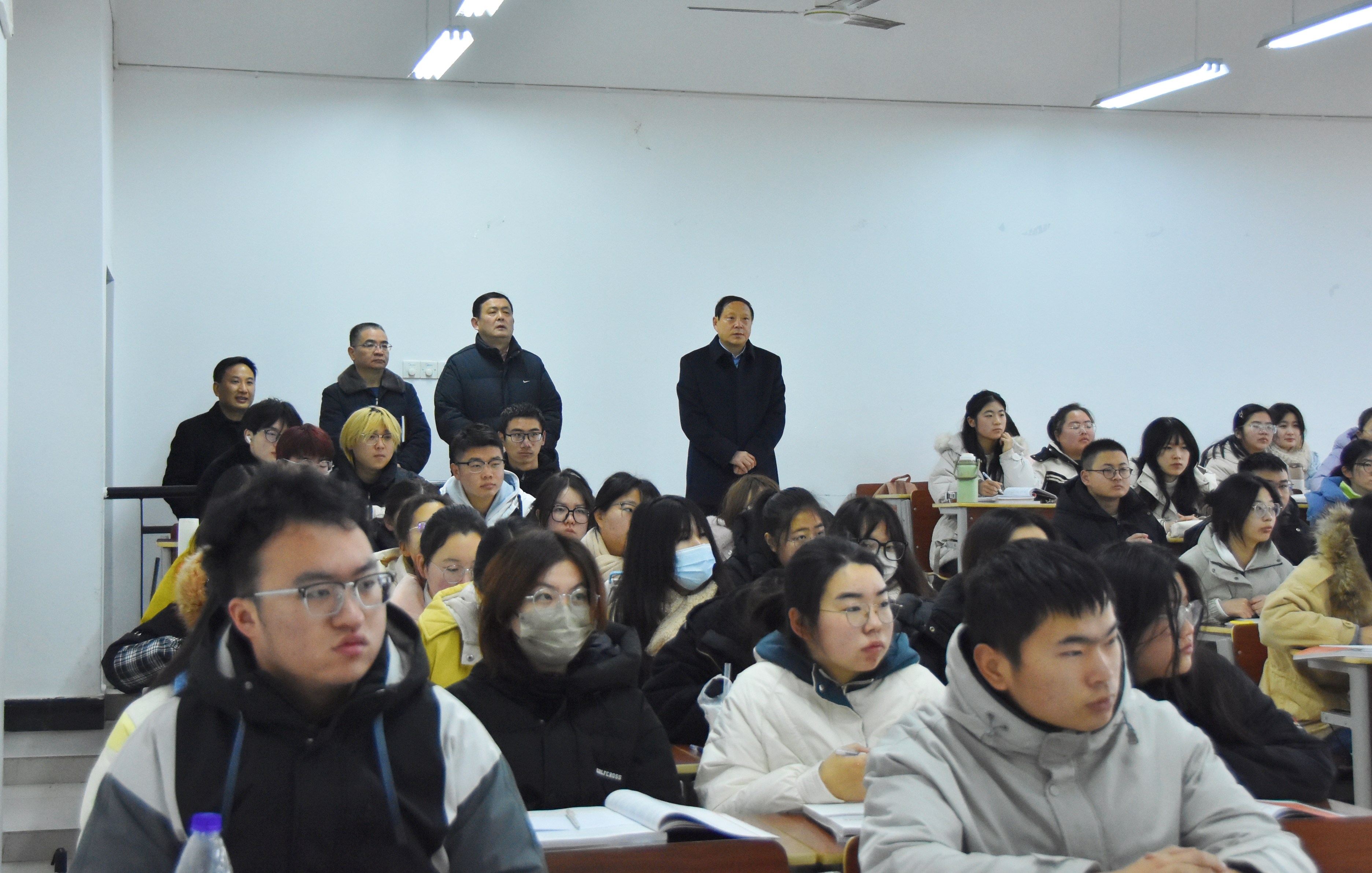 为保证新学期教育教学工作的顺利开展,更好了解新学期课堂教育教学运行情况,2月26日上午,校领导李铁范、张小明、胡海生,在办公室、人事处、教务处、学生处、保卫处、后勤服务集团、网络与信息管理中心等相关部门负责人陪同下,分赴率水、横江两个校区,深入课堂一线检查,抓好开学“第一课”。