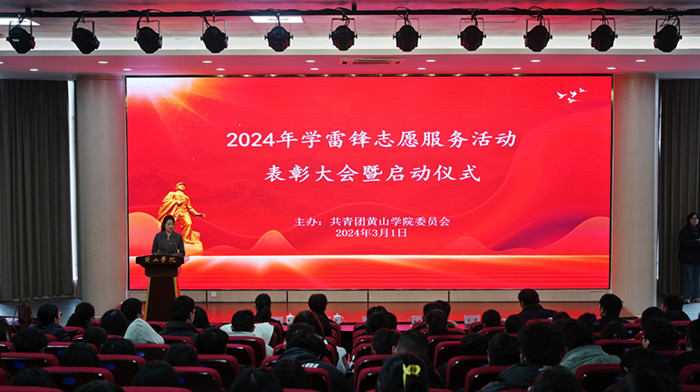 3月1日下午,黄山学院2023年学雷锋志愿服务主题实践活动表彰大会暨2024年学雷锋志愿服务主题实践活动启动大会在文端楼二楼报告厅举行。校党委副书记章文静出席活动,宣传部、学生处、团委等相关部门负责人出席活动。全校各二级学院专、兼职团干部,优秀志愿者以及优秀志愿团队代表约300余人参与活动。