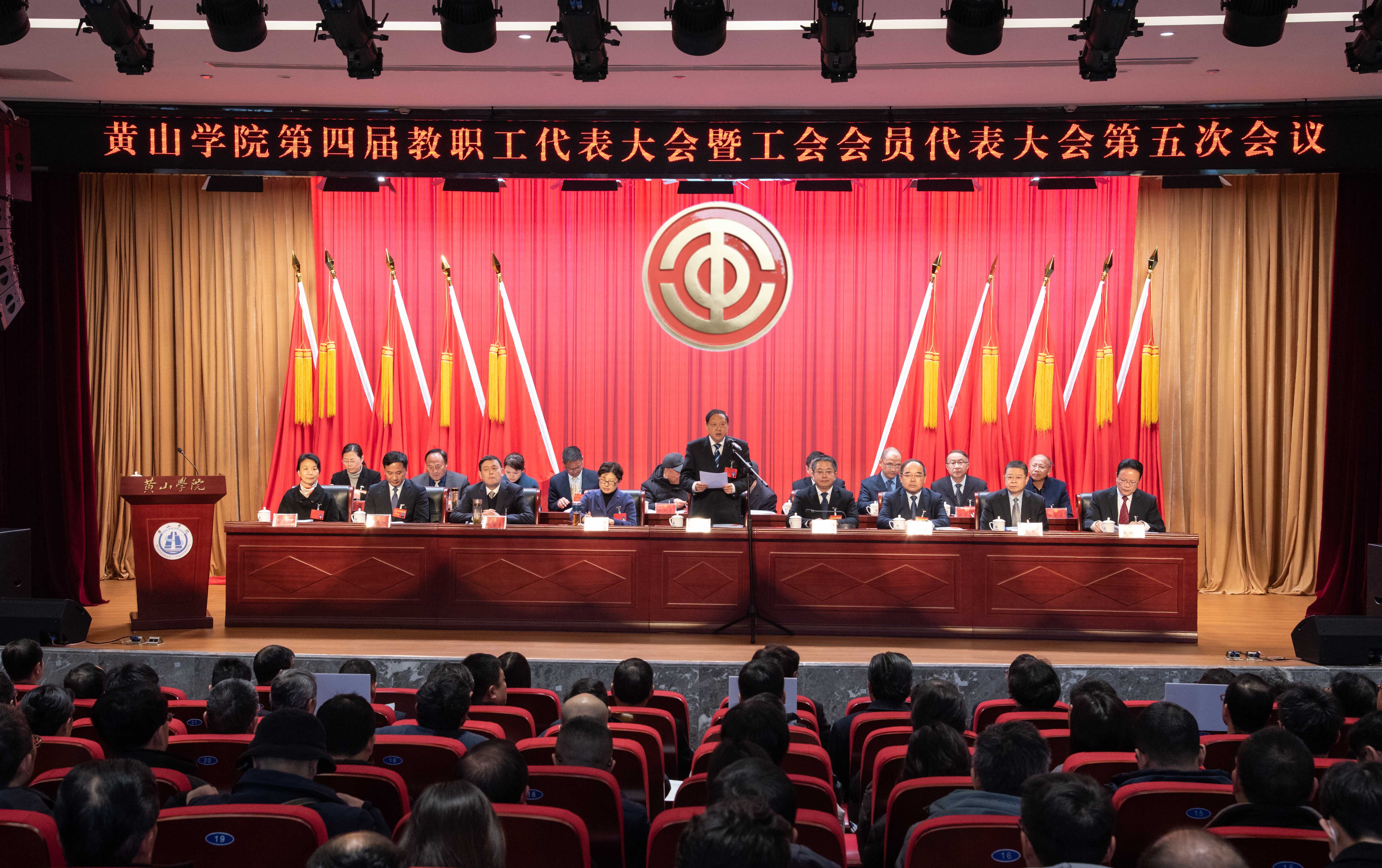 上午9时,在雄壮的《国歌》声中,黄山学院第四届教职工代表大会暨工会会员代表大会第五次会议开幕。开幕会由校党委书记李铁范主持。