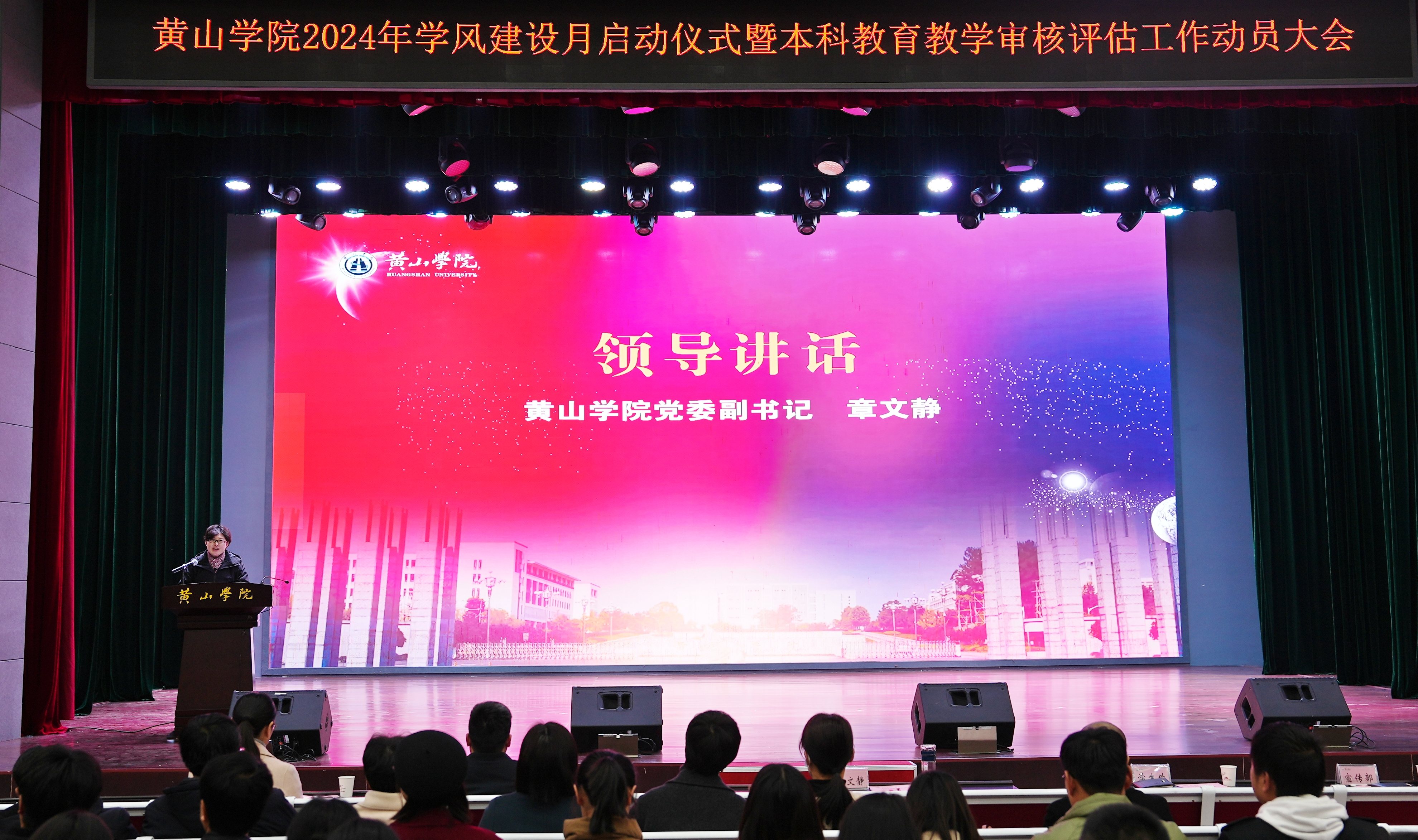 校团委、宣传部负责人分别解读了《黄山学院关于进一步提升大学生文明素养的通知》《黄山学院2024年学风建设月工作方案》。文学院22级汉语言文学专业朱雅琪代表学生就充分认识学风建设及本科教育教学审核评估工作的重要性,积极支持配合学校、老师的各项工作等方面做表态发言。