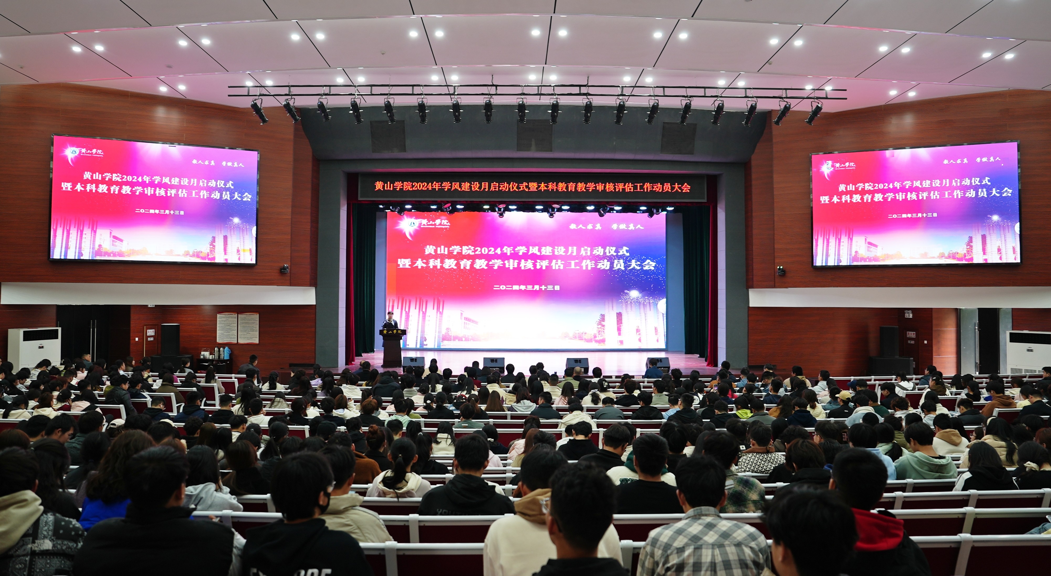 为进一步强化学风建设,培育良好校风、教风、学风,提高教育教学质量,3月13日,2024年学风建设月启动仪式暨本科教育教学审核评估工作动员大会在大学生活动中心举行。校党委副书记章文静出席活动,宣传部、教务处、学生处、团委等相关部门负责人,各二级学院分管学生副书记,全体专兼职辅导员,各班级主要学生干部参加活动。