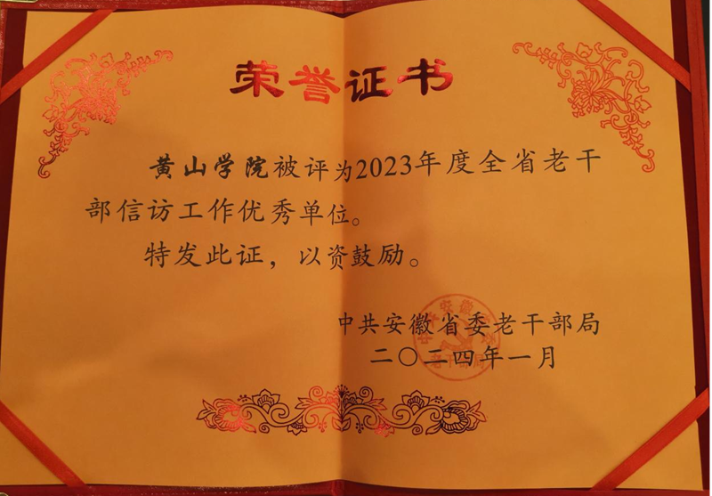 近日,我校在2023年度安徽省老干部调研、宣传、信访工作评选中喜获2023年度全省老干部信访工作优秀单位。
