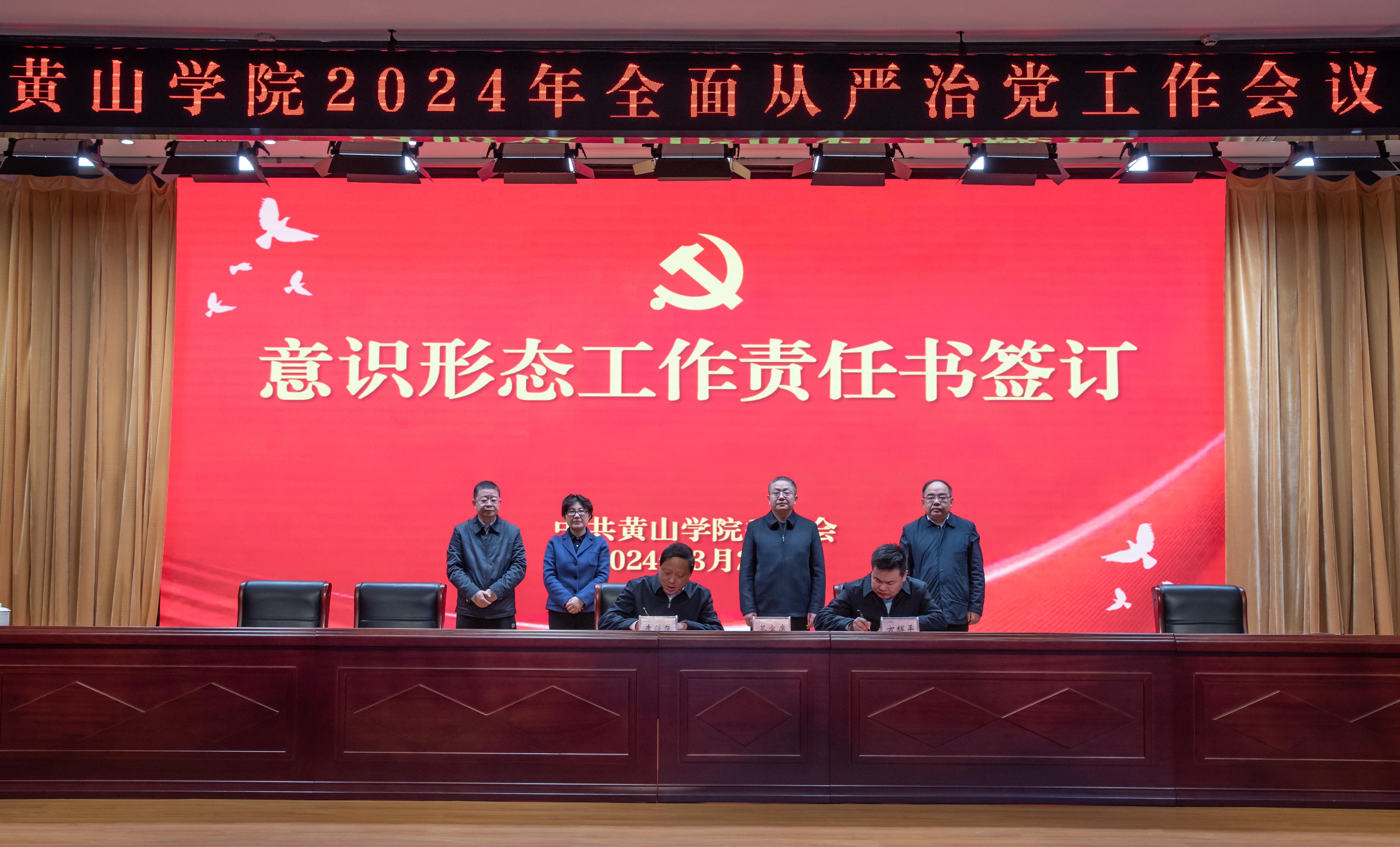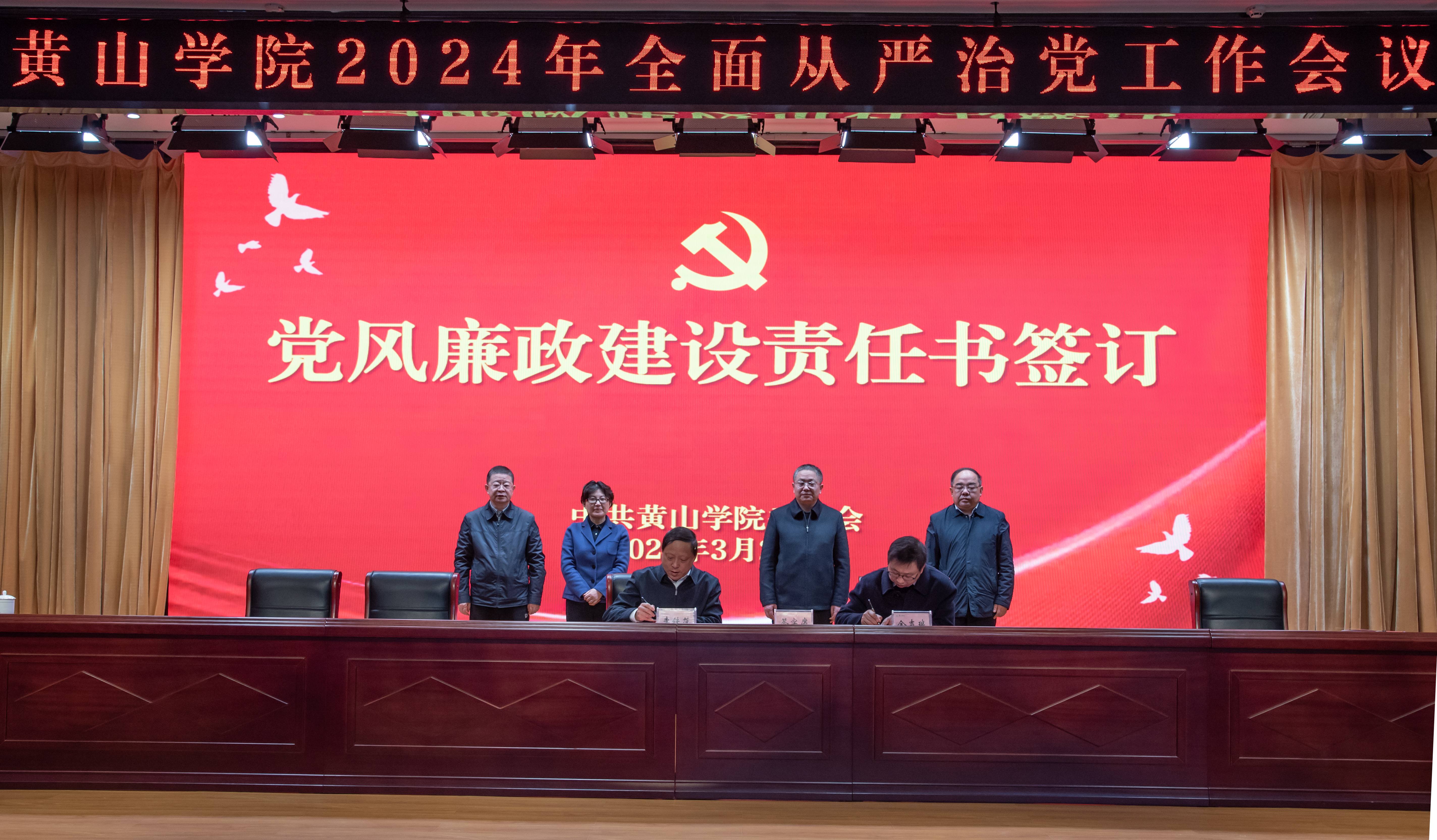 教务处、国有资产管理处、旅游学院、数学与统计学院相关负责人分别代表部门、学院签订2024年党风廉政建设责任书、意识形态工作责任书。