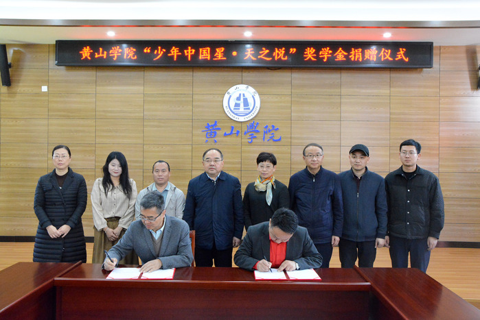 捐赠仪式上,张小明对范潜校友回母校表示热烈欢迎,对黄山学院“少年中国星•天之悦”奖学金的设立表示衷心感谢。他介绍了学校近年来改革发展情况,特别是在学科专业、师资队伍、人才培养、申硕建设等方面取得的成绩。张小明表示,学校会关注支持校友企业的发展,希望校友多与母校联系交流,开展校企合作,助推校友企业进一步发展。