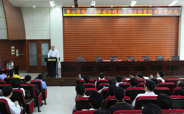 会上,院长汪建利代表学校与院系代表生命与环境科学学院以及部门代表学生处负责人分别签订了《2010年黄山学院安全稳定工作目标责任书》。