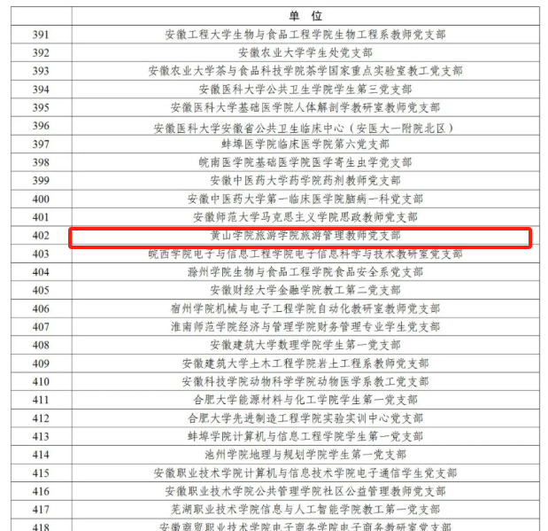 近日,教育部思想政治工作司发布《关于公布第四批全国党建工作示范高校、标杆院系、样板支部培育创建单位名单的通知》,共遴选产生10个全国党建工作示范高校、100个全国党建工作标杆院系、1001个全国党建工作样板支部。我校旅游学院旅游管理教师党支部成功入选第四批“全国党建工作样板支部”培育创建单位,这是我校首次获评国家级党建品牌。