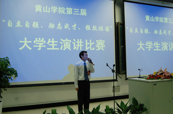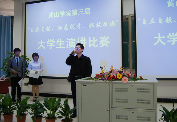 4月22日下午,学生处与团委主办的黄山学院第三届“自立自强、励志成才、报效祖国”大学生演讲比赛在南区第二教学楼一楼报告厅举行。校党委副书记李家祥出席演讲比赛赛场并讲话。