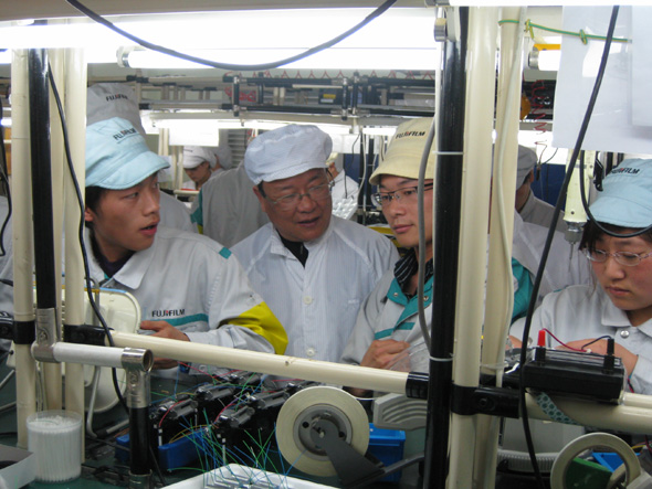 在富士胶片影像机器有限公司,汪良发仔细听取了该公司的情况介绍,观看了公司的影视资料和产品展示,考察了公司的生产工艺,看望了在生产线上实习的我校实习生,仔细询问实习生的工作和生活情况。