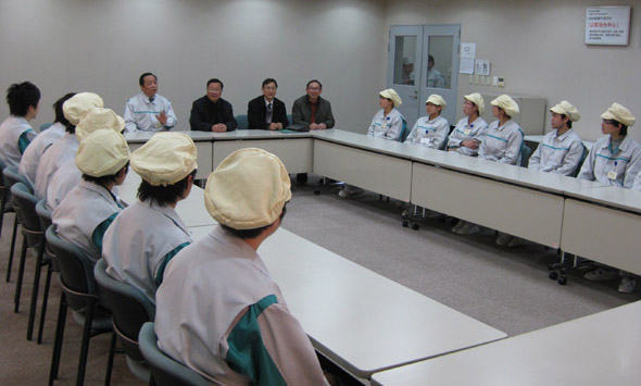 在富士公司,汪良发一行还访问了公司总经理田中弘志和副总经理村田益太朗,并与副总经理稽瑞康进行了座谈。汪良发介绍了黄山学院的发展情况,表示学校愿与公司开展深入的合作,通过共同努力使富士公司成为黄山学院的优秀实习就业基地。田中弘志真诚欢迎黄山学院派毕业生来公司实习和就业,愿意为电子信息工程和日语等专业毕业生提供实习岗位。