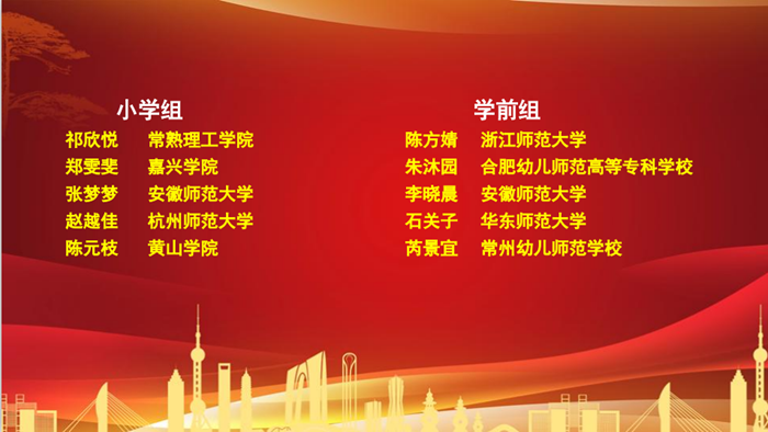 12月6日至8日,由上海市教育委员会、江苏省教育厅、浙江省教育厅、安徽省教育厅联合主办,长三角教师教育联盟协办的首届长三角师范生教学基本功大赛在安徽师范大学举行。我校教育科学学院2016级小学教育专业学生陈元枝在激烈竞争中脱颖而出,荣获大赛小学组一等奖第一名;2017级学前教育专业(对口)秦自萍、2016级学前教育专业(对口)吴远梦获学前组三等奖。